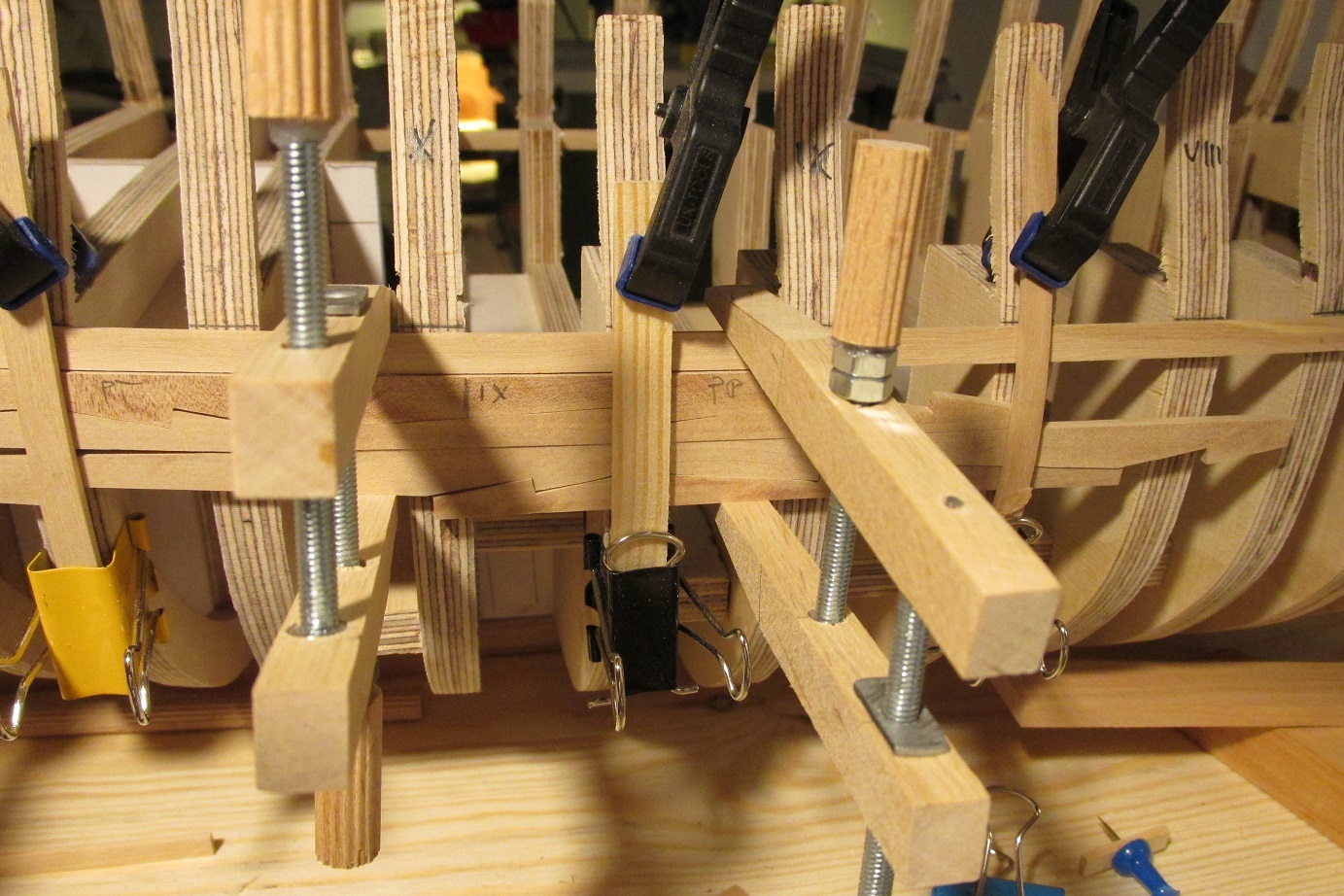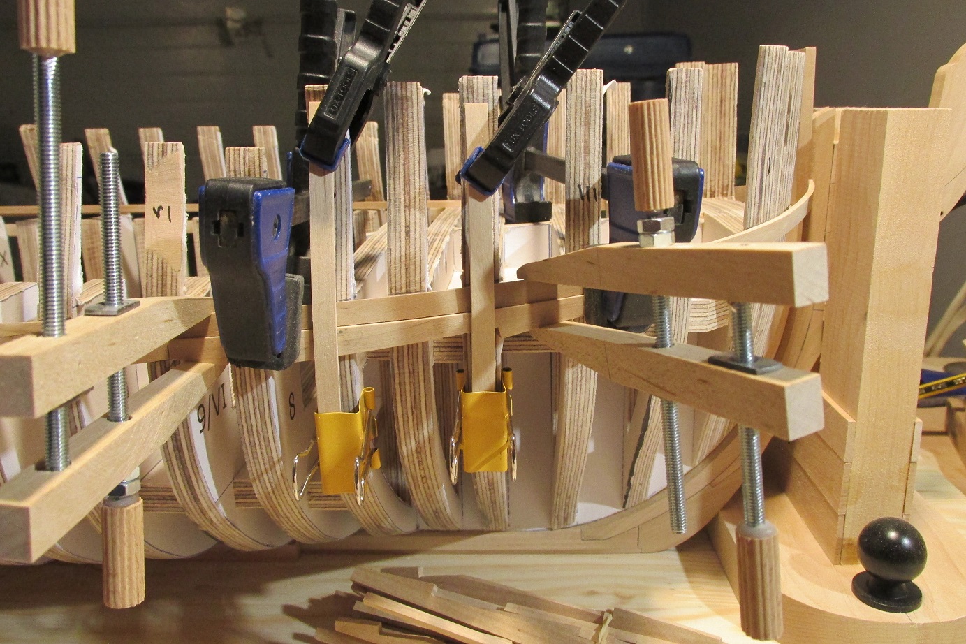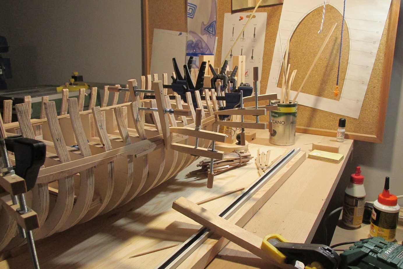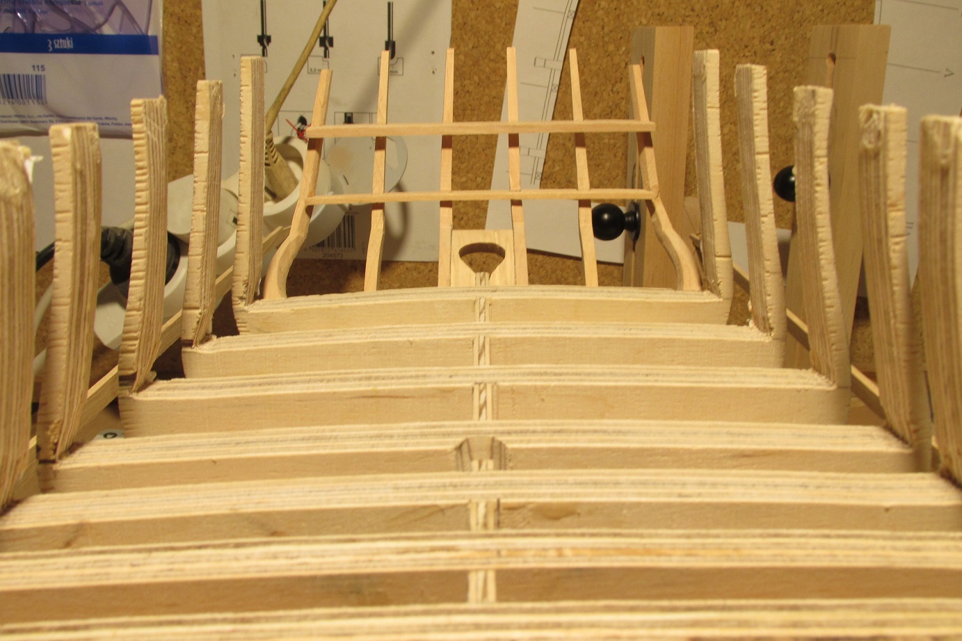 Rafał, tak patrzę na tę piękną pracę, na dokładność pasowania poszczególnych elementów, na staranność i Twoje ogromne umiejętności poparte niewątpliwym talentem, że aż się dziwię. Nie pozostaje Ci nic innego, jak tylko wymienić sklejkowe wręgi na drewniane i kontynuować budowę kadłuba metodą admiralicji. Naprawdę szkoda byłoby to wszystko teraz zakryć pełnym poszyciem.