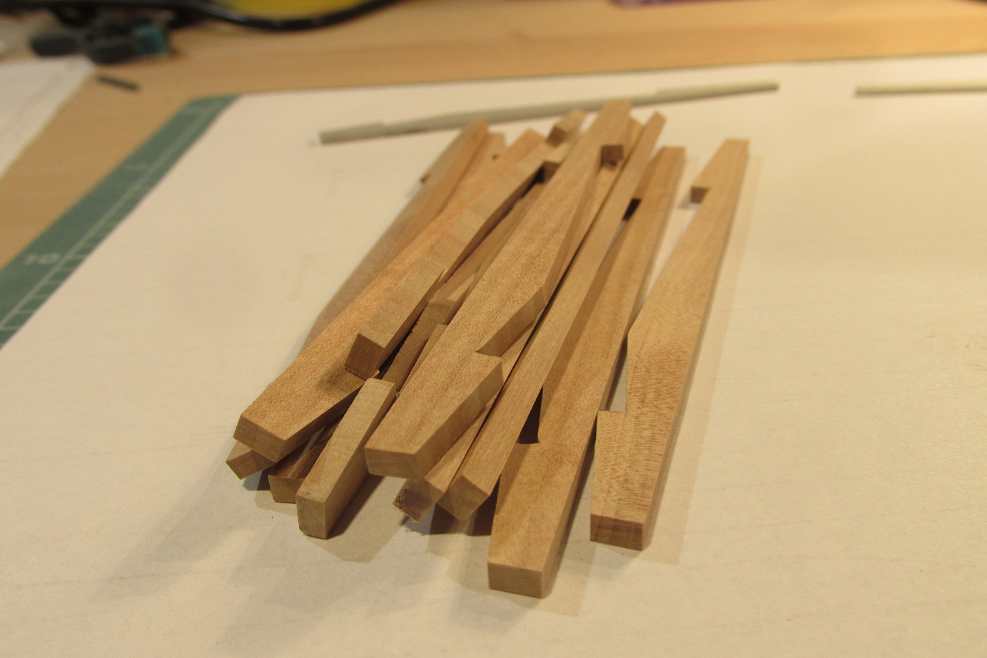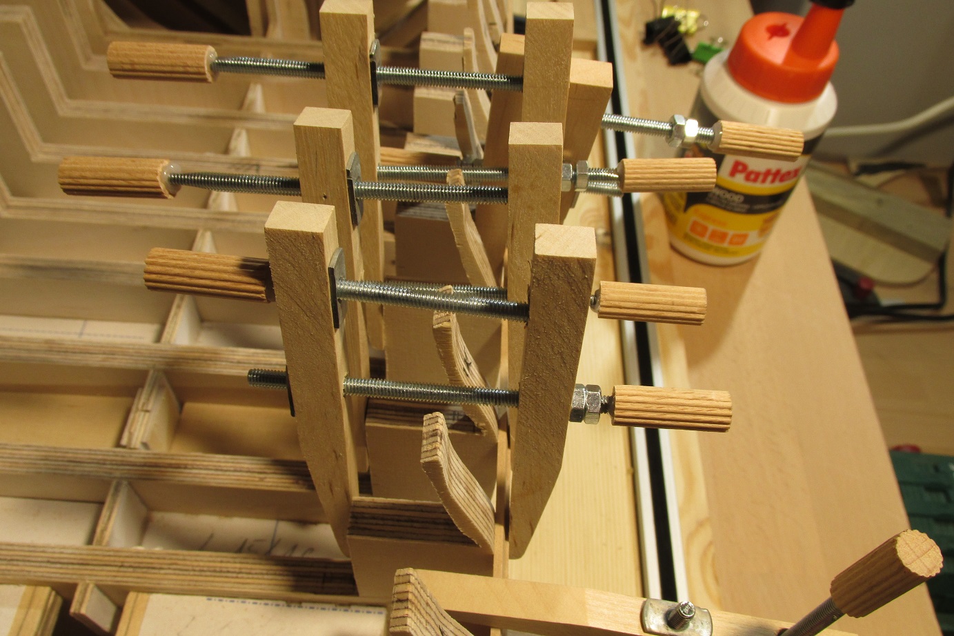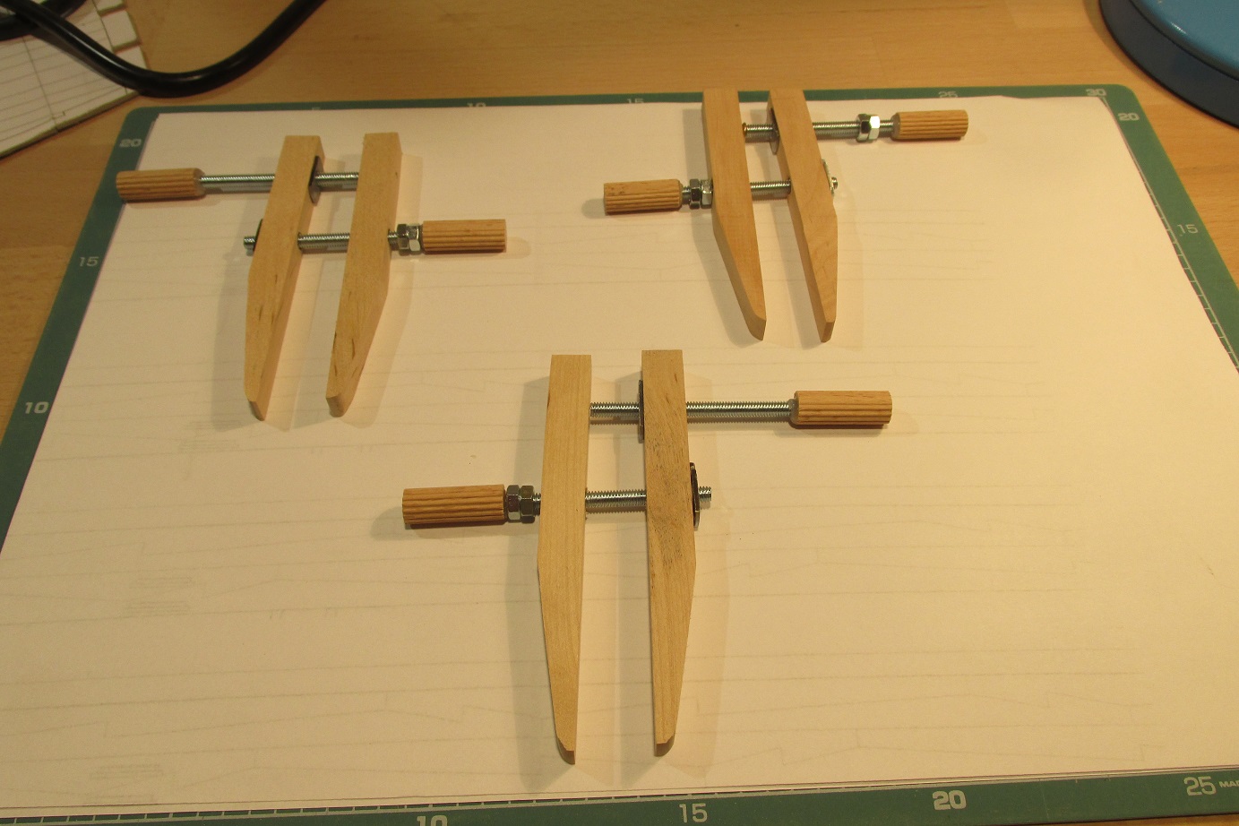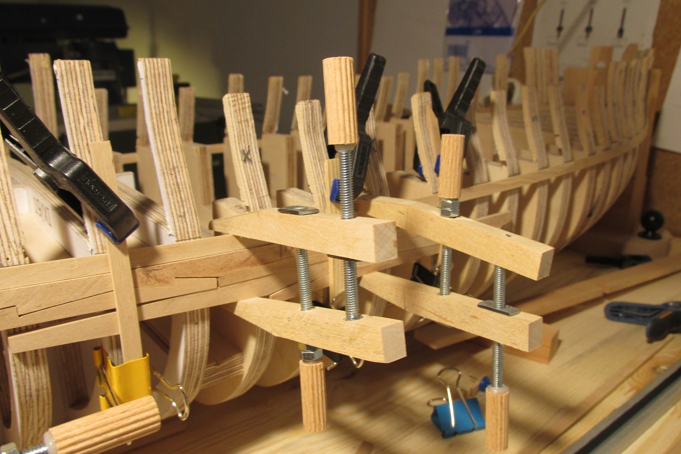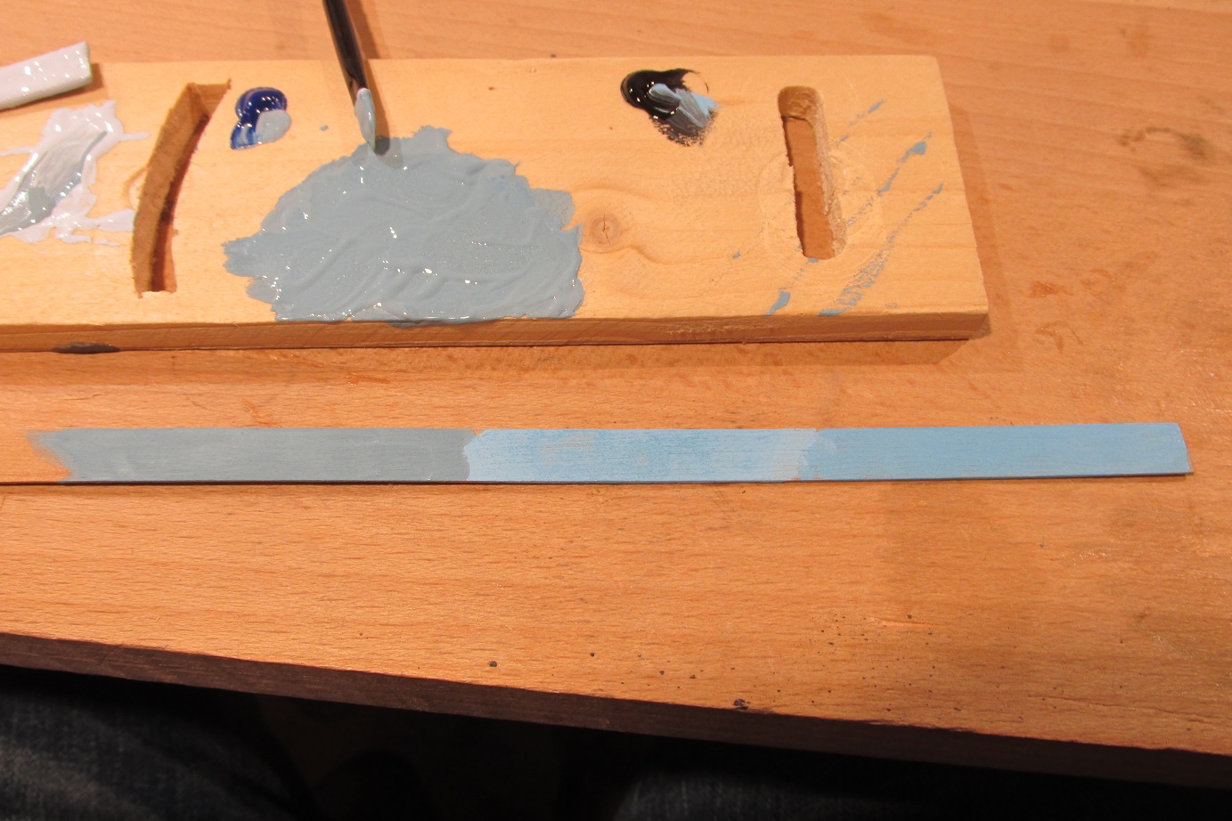 Teraz już wiem dlaczego model żaglowca buduje się kilka lat :P Siedzę już parę wieczorów w garażu i udało mi się przygotować planki na odbojnicę. Jak zobaczyłem te 3 mm to doszedłem do wniosku, że potrzebne będą ściski i też je zacząłem robić, zanim doszedłem do udanego prototypu znów minęły dwa wieczory. W między czasie testy z kolorem... i tak siedzę, robię i nic nie przybywa :) No dobra, już nie narzekam, najważniejsze, że zapał nie przechodzi i chce się robić ;)