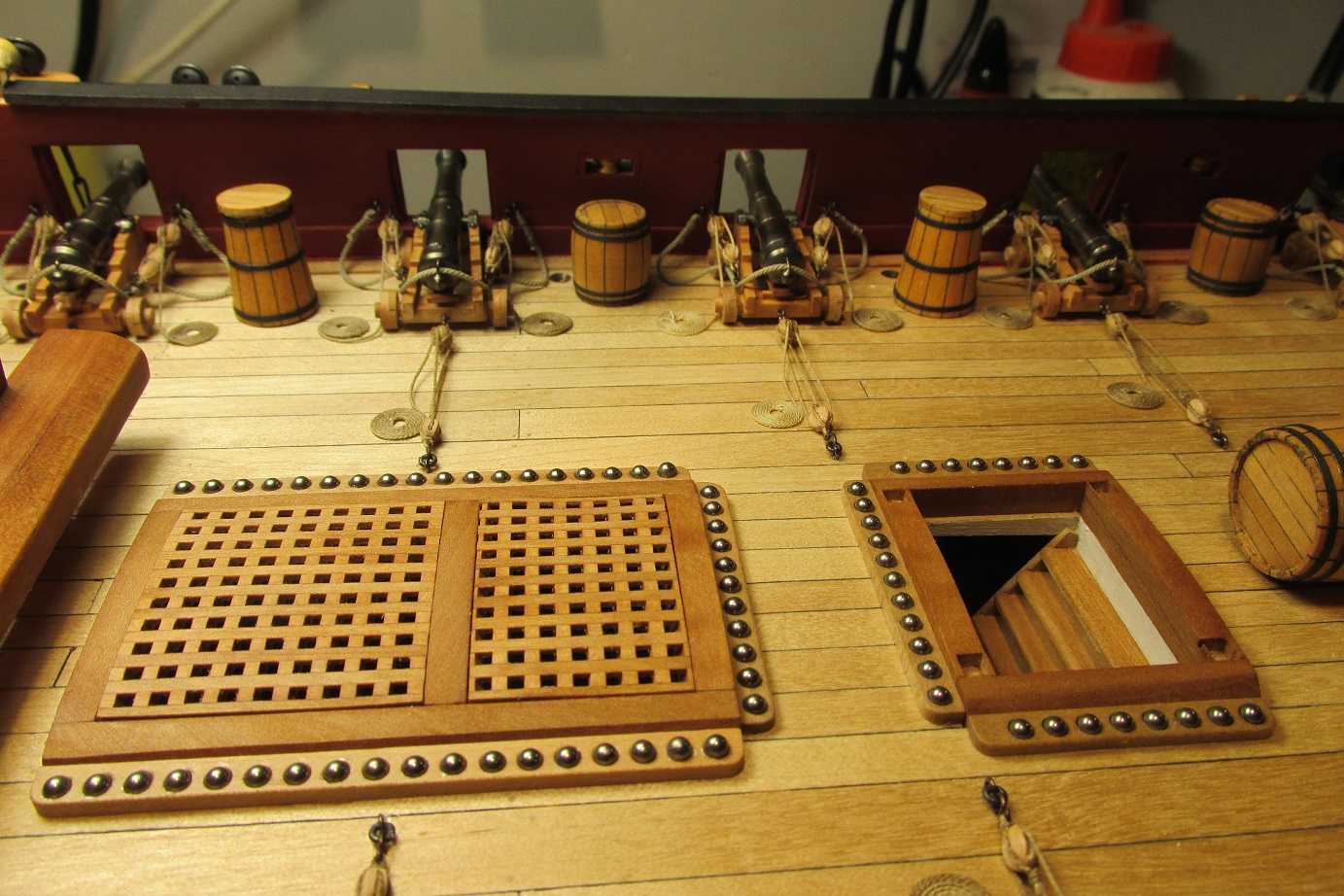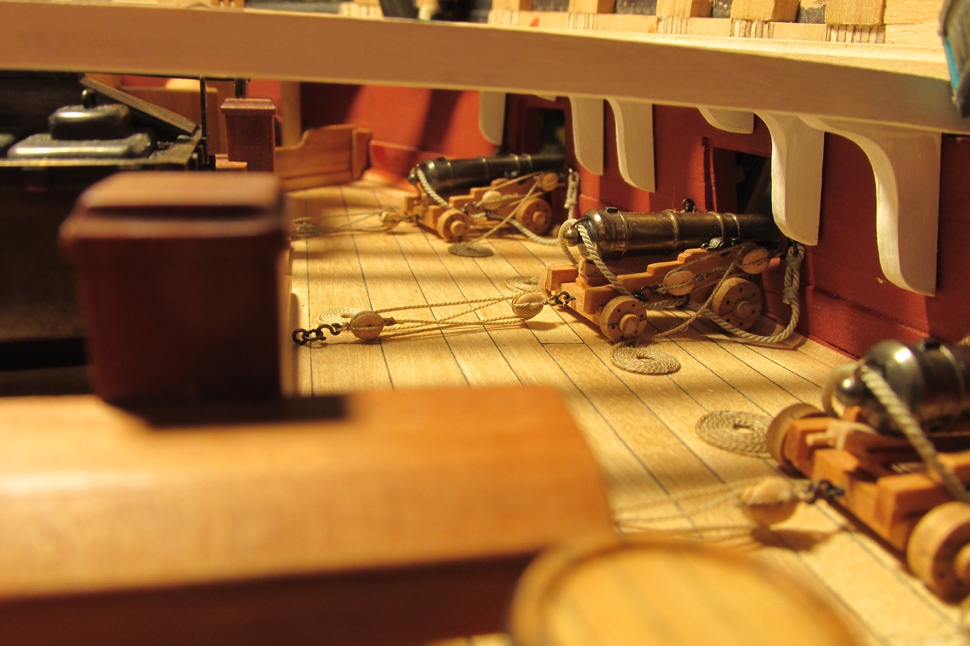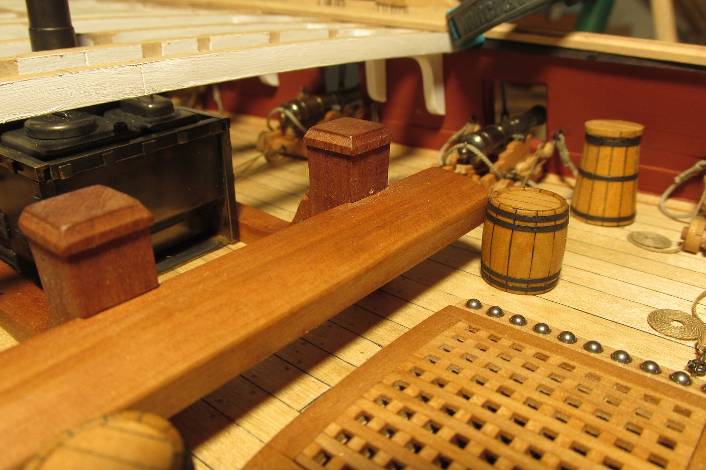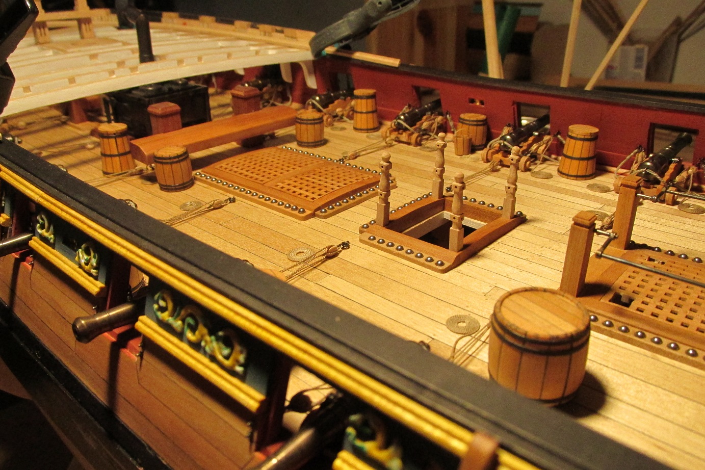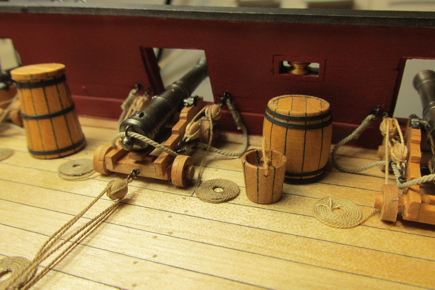 PS: Super fajny model Ci wychodzi! :o Tylko usun te beczki miedzy dzialami - to nie jest dlan odpowiednie miejsce (beczki z woda byly typowo skladowane w miejscu zwanym HOLD pod dolnym pokladem (tzw. orlop deck).