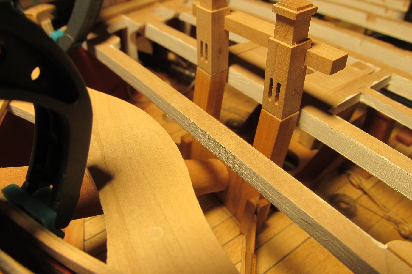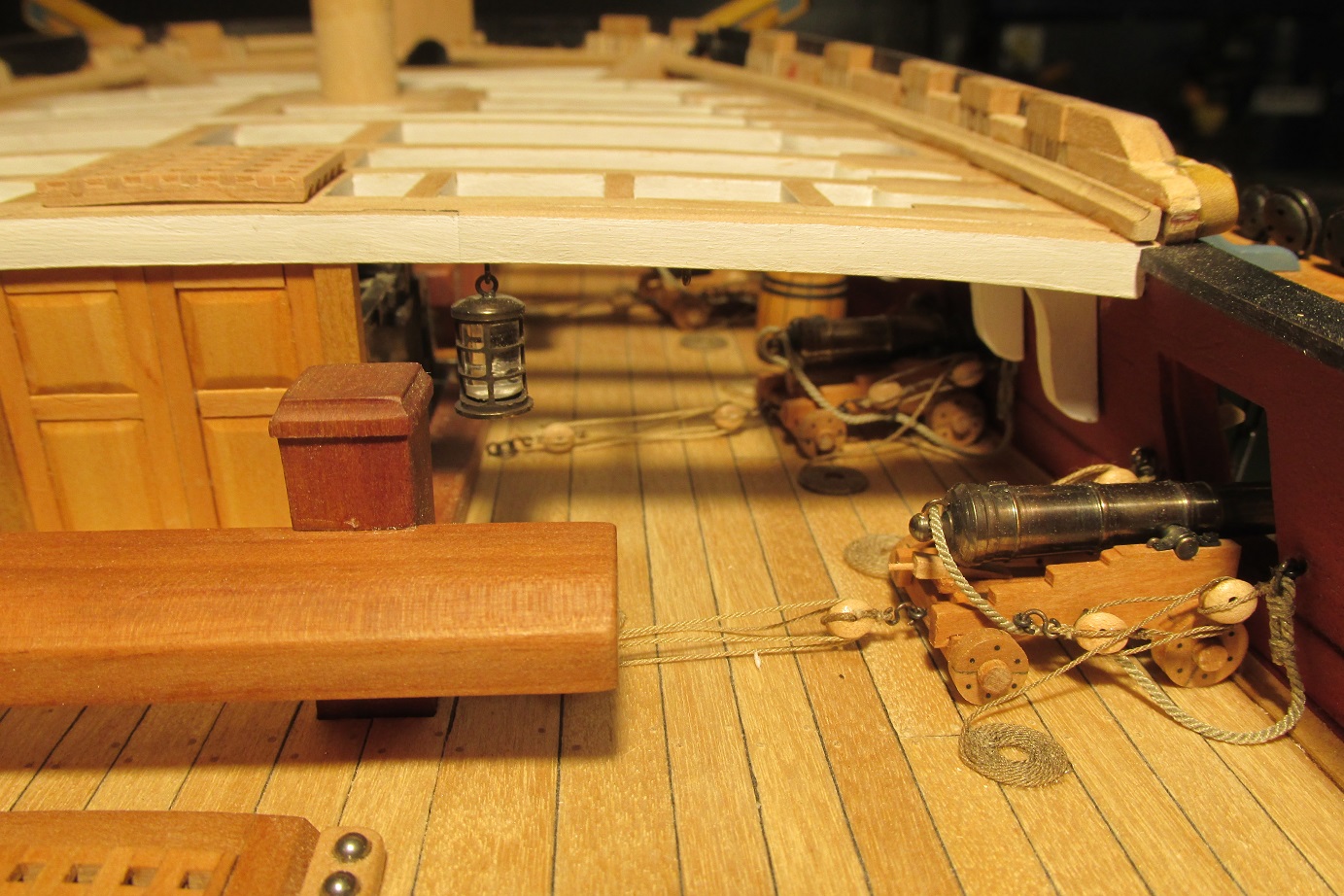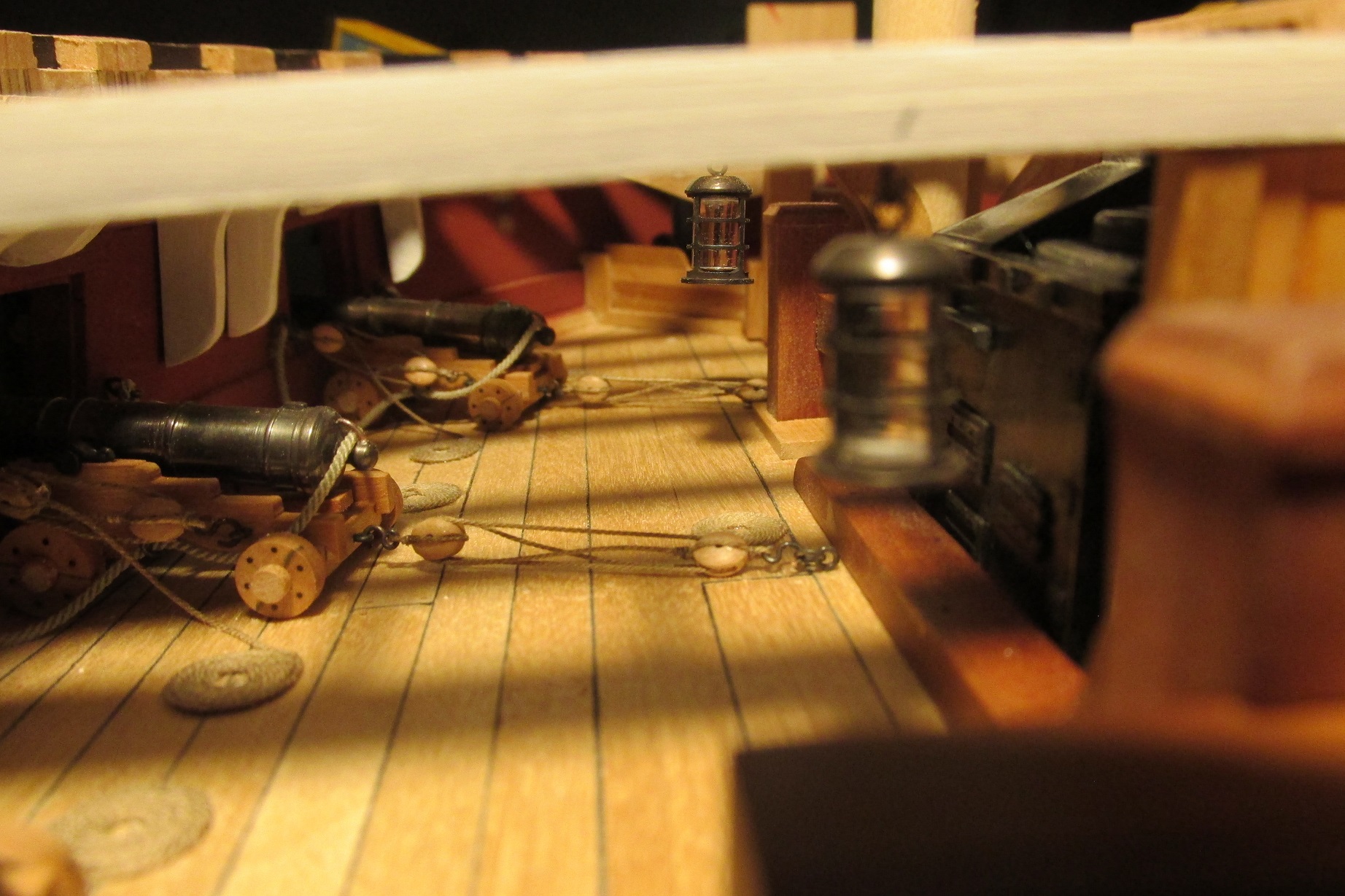 Montowanie pokładników zbliża się wielkimi krokami. Postanowiłem zrobić lampy, które będą wisiały pod nimi. Zacząłem też montować działa do pokładu działowego.