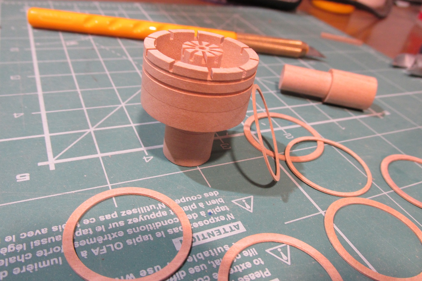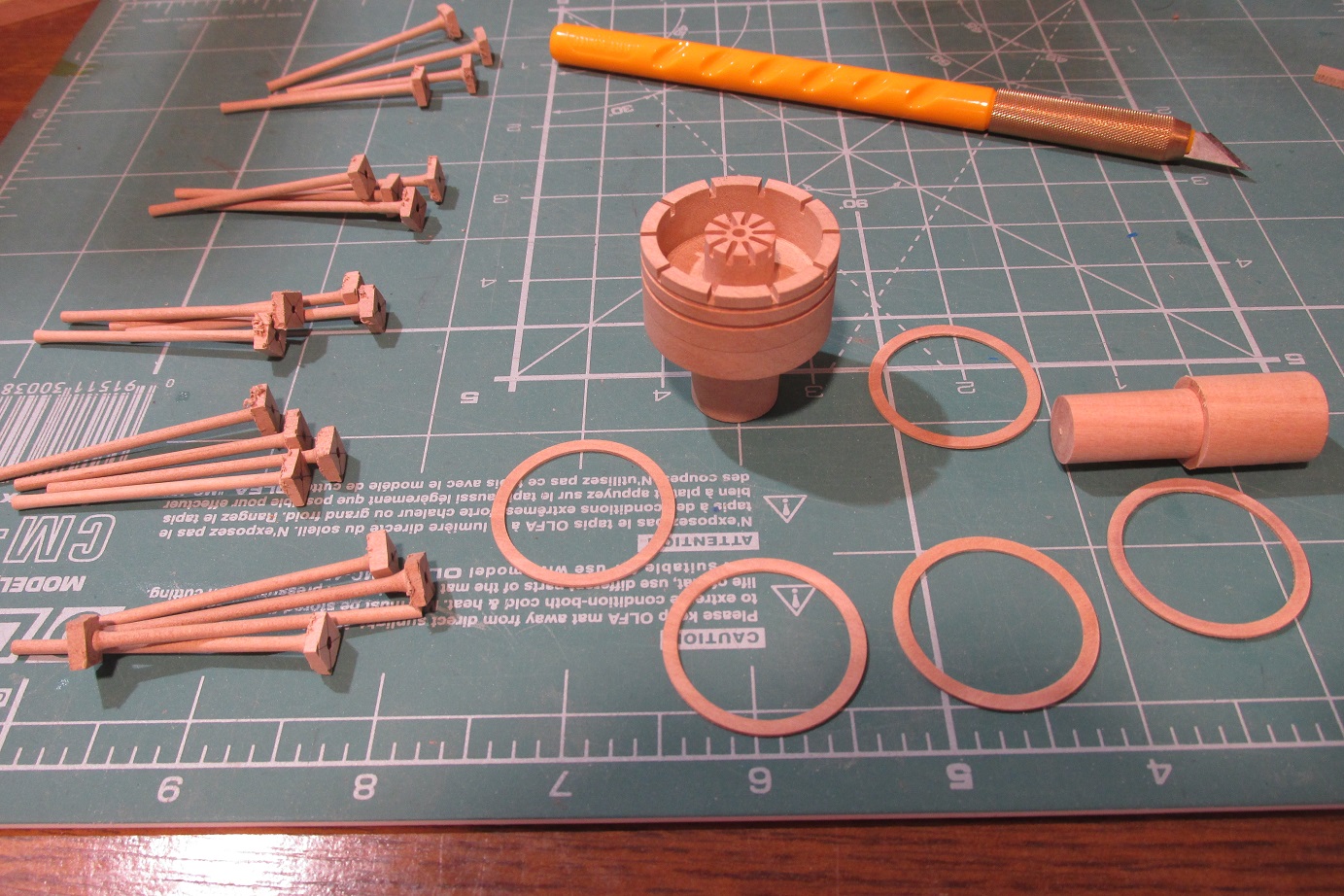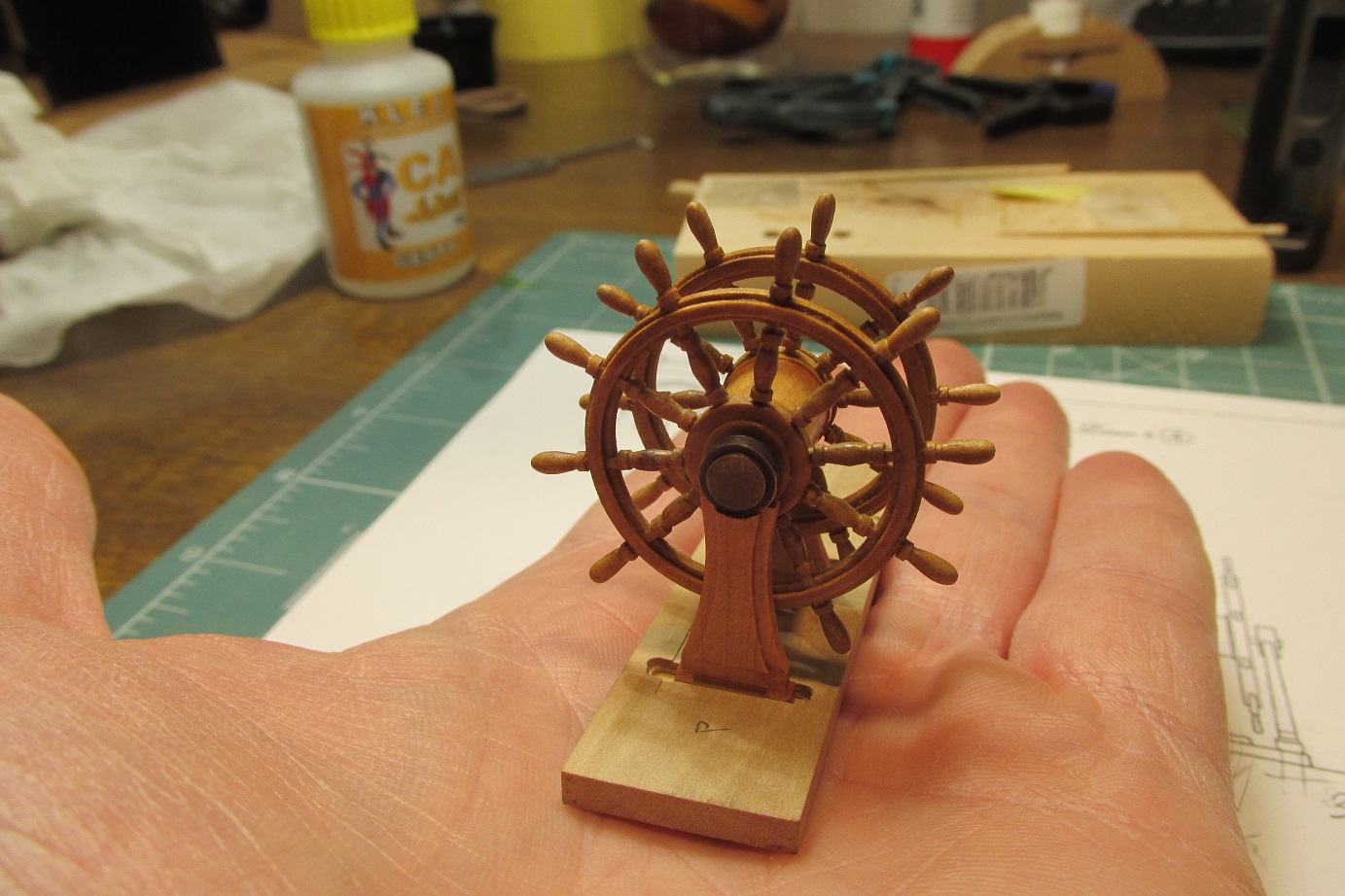 Koło sterowe. Komponenty wykonane, teraz tylko wypolerować, pomalować i skleić.