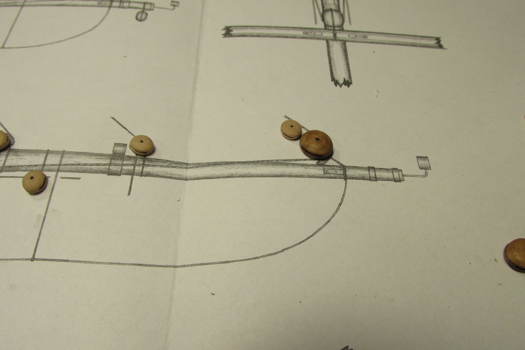 Kończę powoli z drzewcami masztów, teraz zaczną się linki. Trochę mnie to przeraża, bo gapię się na te wszystkie rysunki, zdjęcia, filmy i inne analizy, ale pytania rodzą się szybciej niż odpowiedzi. Poza tym dłubanina ze zbrojeniem bloczków też okazuje się skomplikowane i pewnie zanim coś powiążę sporo materiału pójdzie do kosza, znowu R&D.