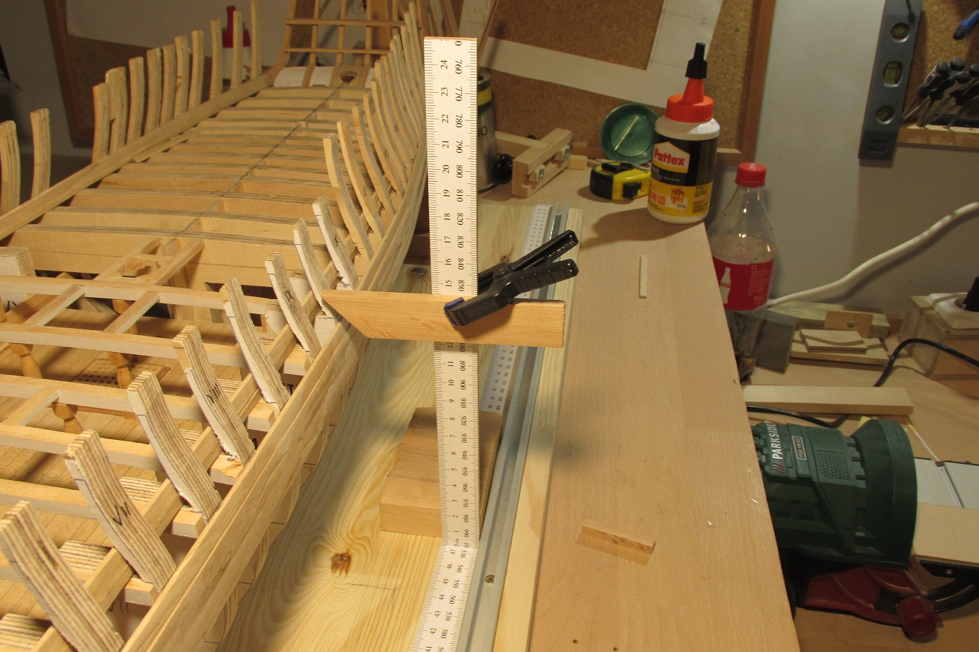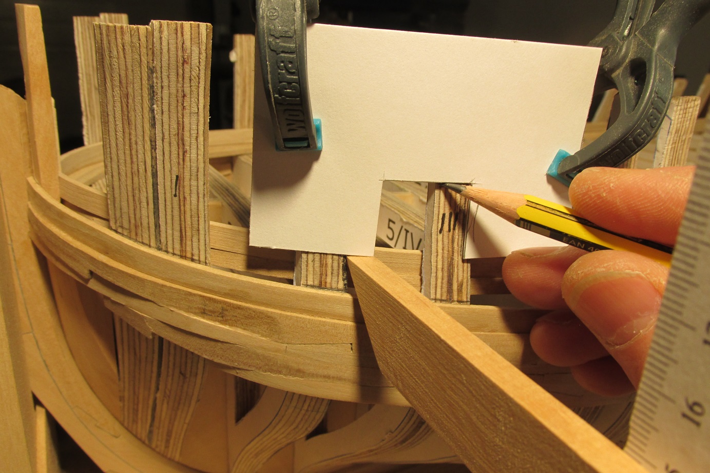 Tomku, masz rację dolny pokład jest węższy. Ale jest to zrobione rozmyślnie. Ponieważ robię pełne poszycie (no może forecastle i quarter deck będzie częściowo odkryty), to dolny pokład będzie widoczny tylko przez otwarte gretingi na upper deck. Dlatego też pomyślałem, idąc za przykładem bardziej doświadczonych kolegów, że zrobię tylko część dolnego pokładu.
