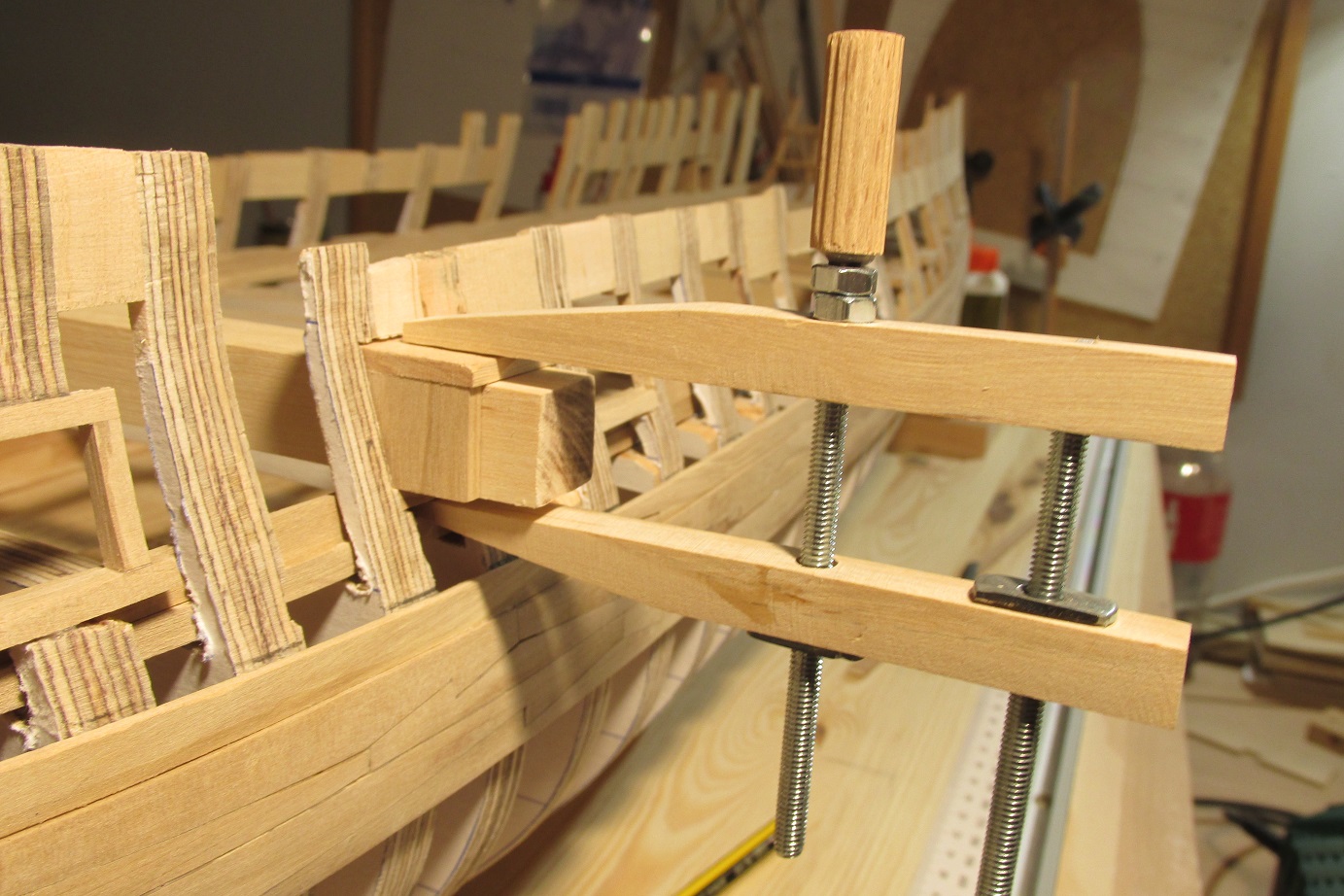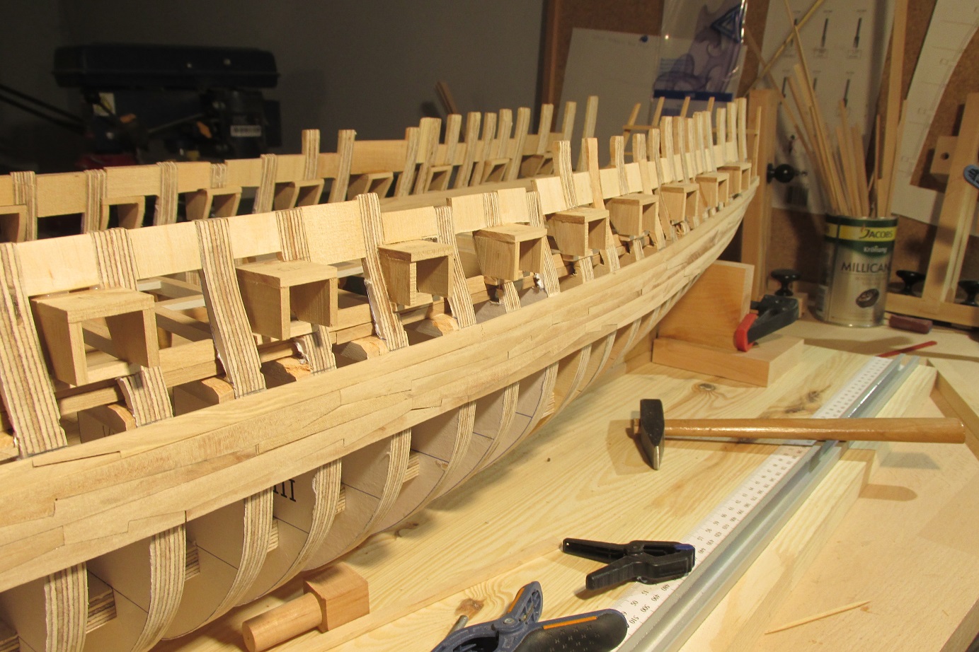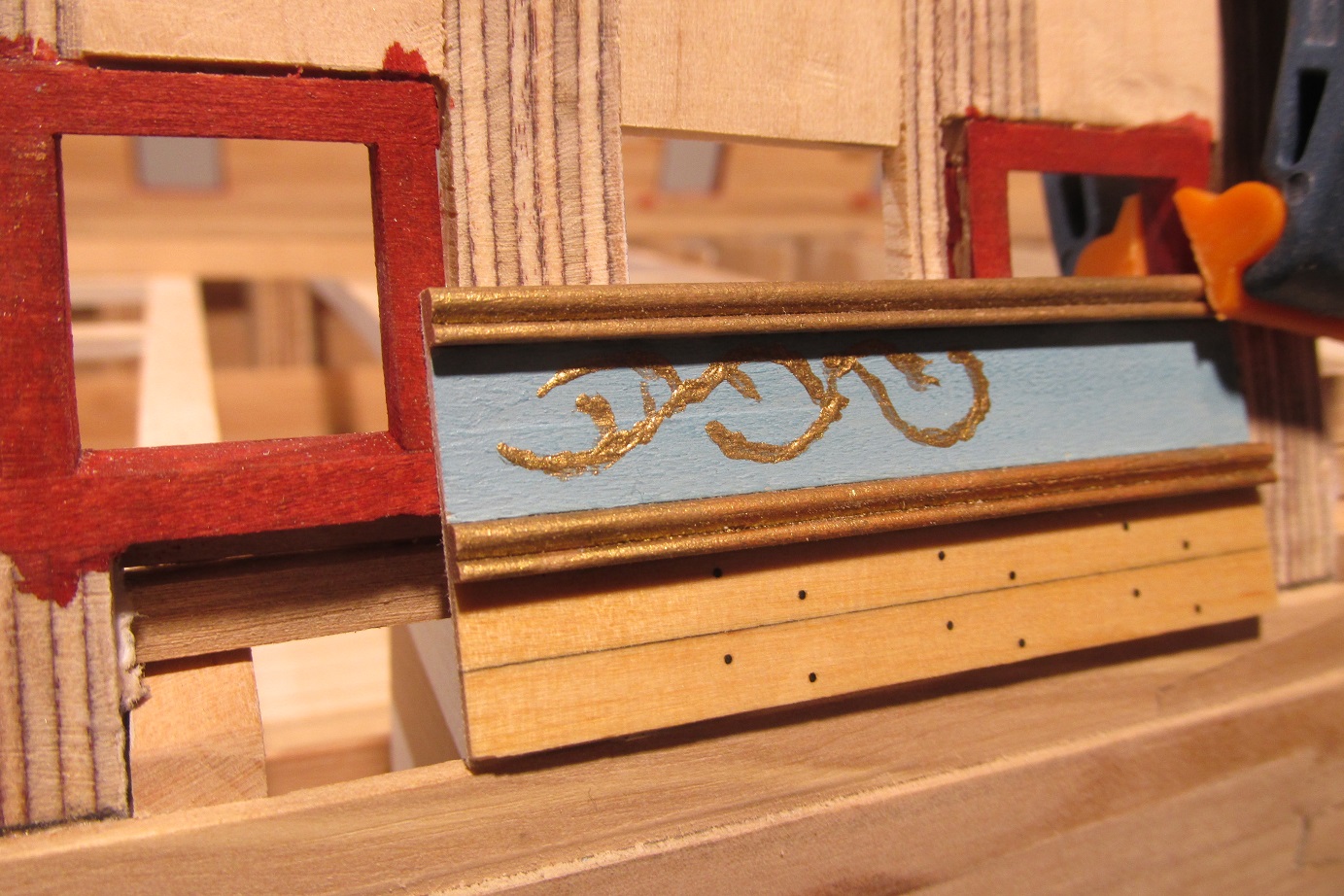 Ślamazarnie, ale do przodu. Cały czas robię furty działowe, w międzyczasie dla urozmaicenia zrobiłem listwy ozdobne na nadburciach oraz kołowrotki na liny kotwiczne w burtach (nie wiem jak się nazywają