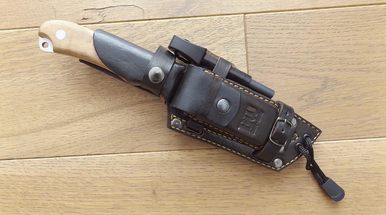 Pochwa bushcraftowa mojego projektu. Na dobre wciągnęło mnie dłubanie w skórze. No i dorobiłem się w końcu własnej puncy, a to ważne, żeby praca, która idzie w świat, była odpowiednio sygnowana.