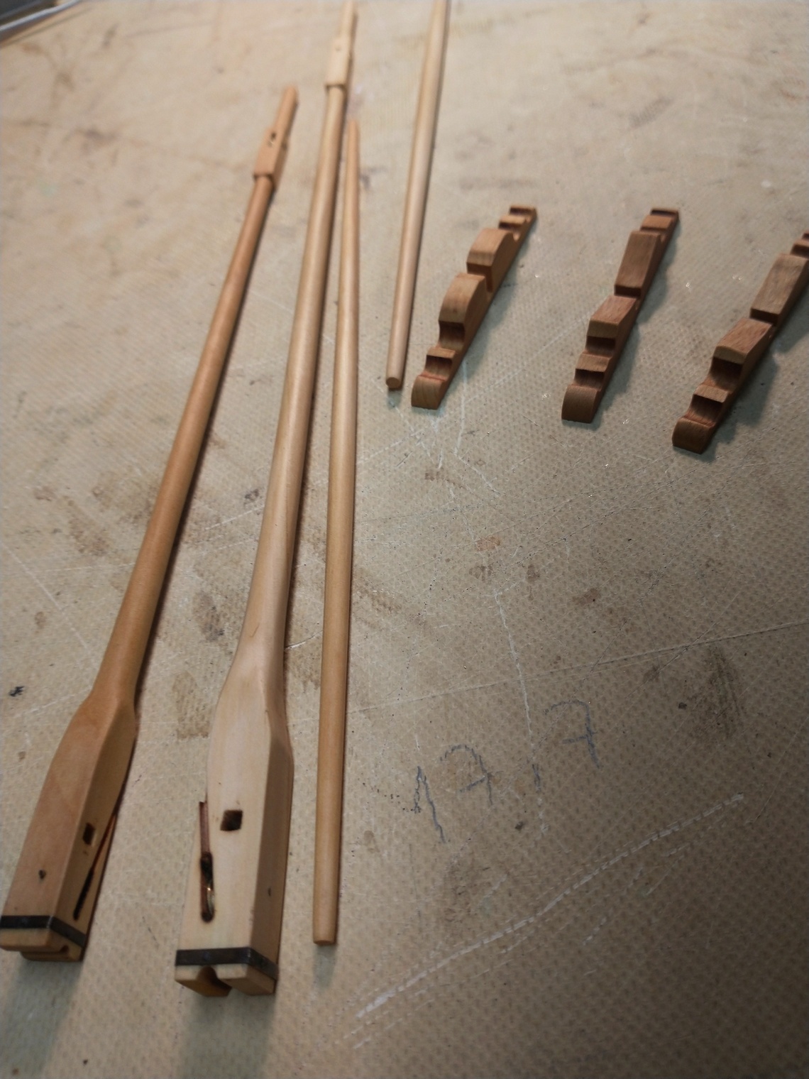 Na koniec zrobiłem podstawy łodzi, a także zapasowe drzewca, które będą mocowane w komplecie z łodzią, na pokładzie okrętu.