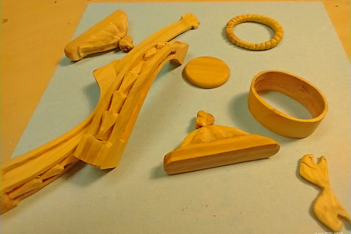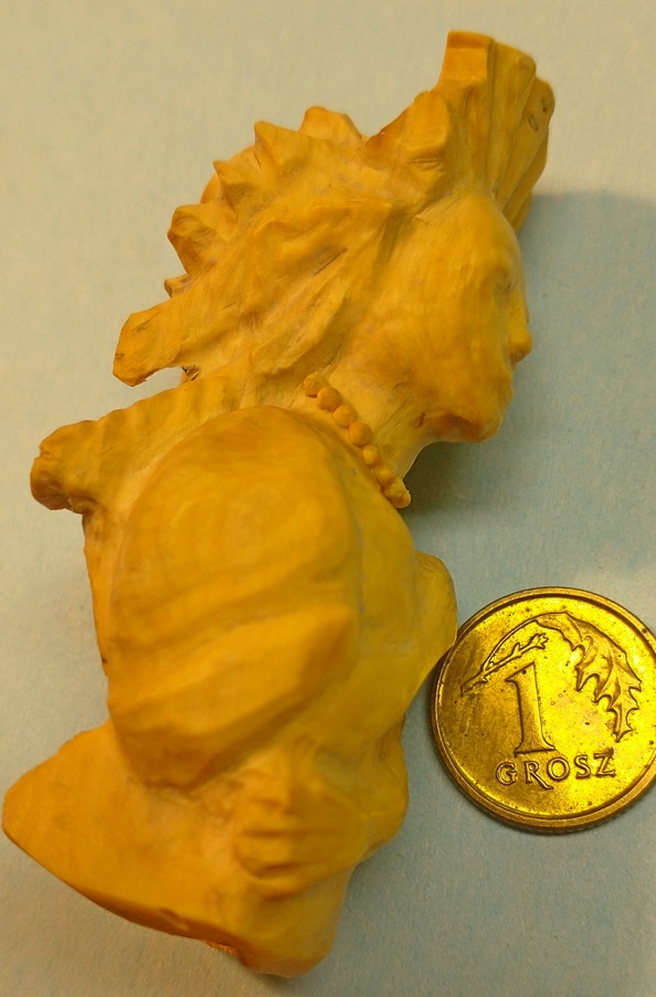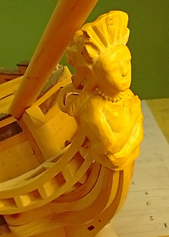 Oto efekt kilku godzin pracy. Figurka galionowa w zasadzie gotowa:Adam podsunął mi banalnie proste rozwiązanie polerowania zakamarków. Bambusowy patyczek ścięty ukośnie, z naklejonym drobnym papierem ściernym. Bardzo skuteczne rozwiązanie
