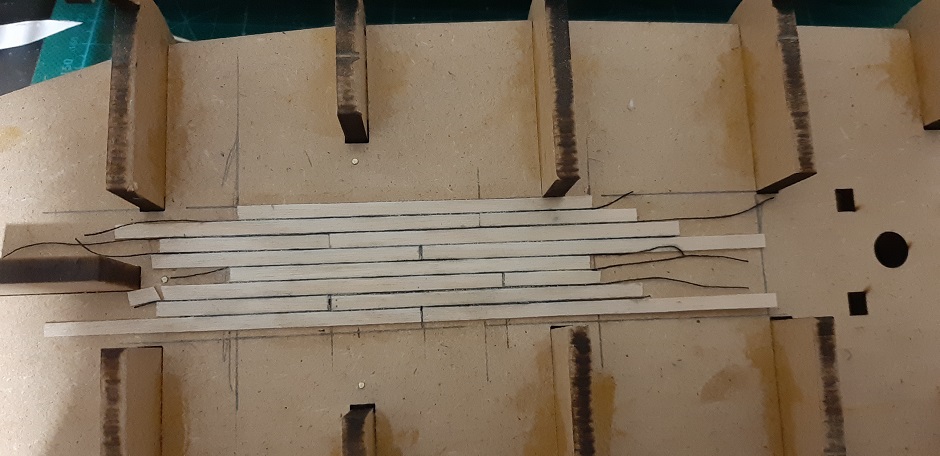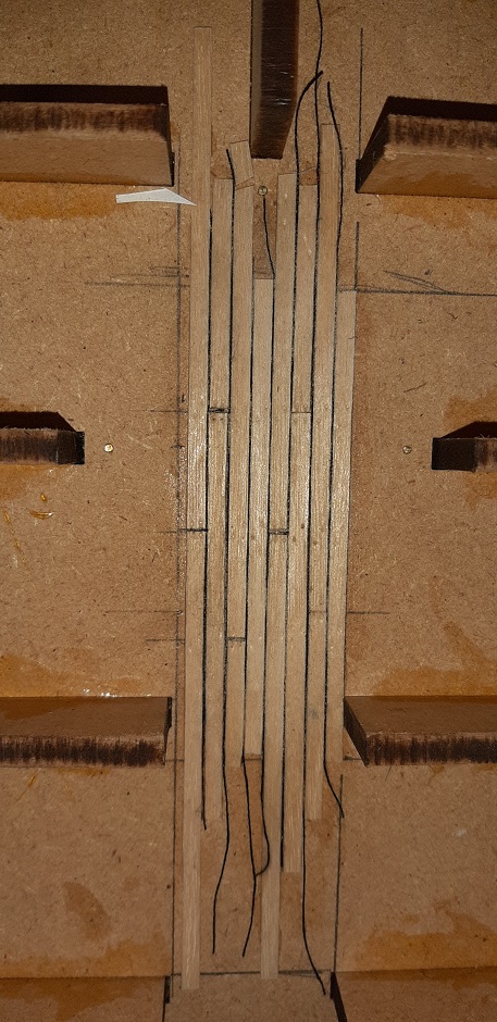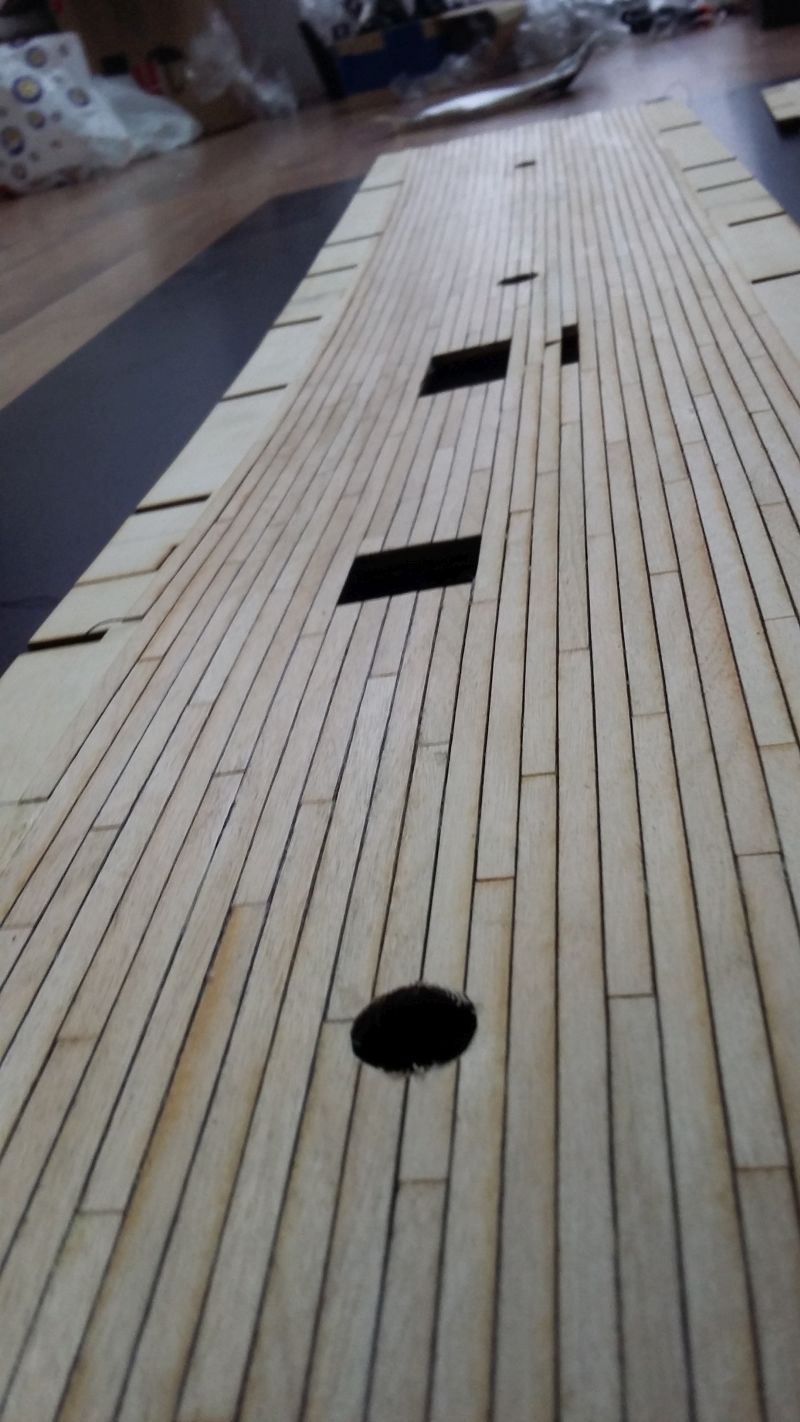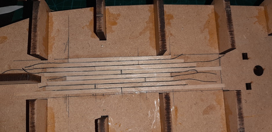 Na razie jest to tylko sprawozdania z budowy-zacząłem go 1 marca 2019 roku, robiłem przez około 2 tyg, i jest jak na fotkach. Potem i obecnie nawet go nie dotknąłem ;) . Klejone było titebondem. Już na samym początku budowy wytrasowałem na dziobie miejsca w których to "planki się schowają", ot takie ułatwienie.