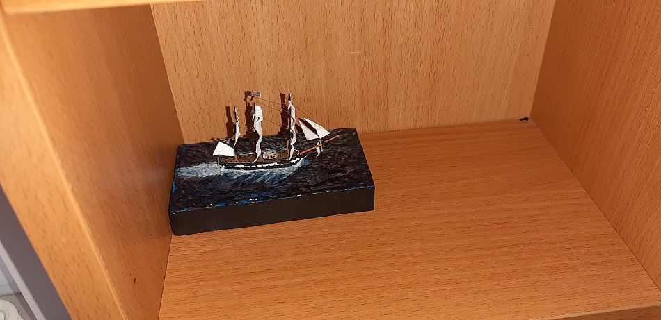 Wydaje mi się, że ciut przesadziłem z falami, model tak jak by za szybko płynął, ale zważywszy na to, że jest to pierwsza tego typu dioramka to wydaje mi się, że tragedii nie ma.