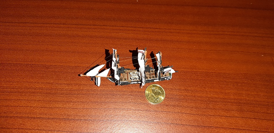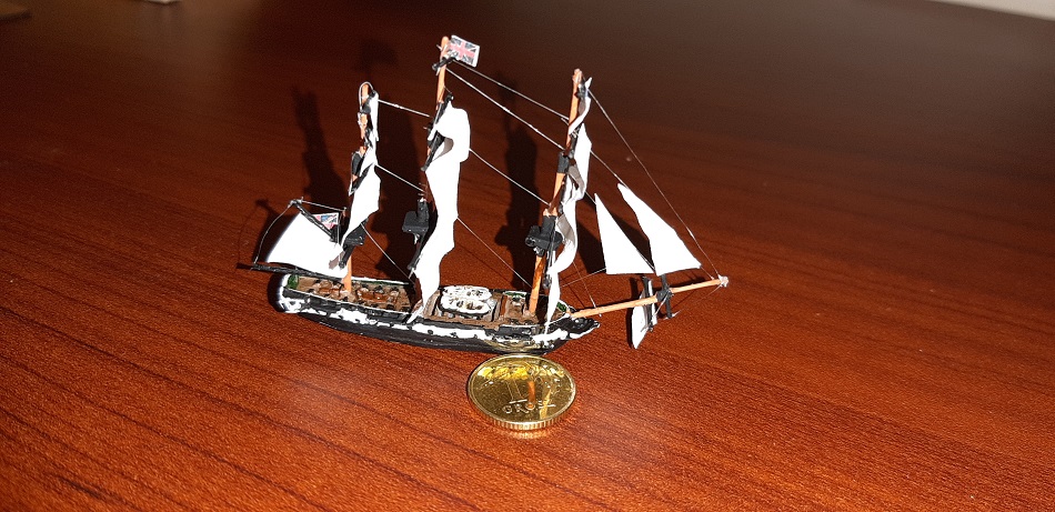 Na początku byłem sceptycznie podchodziłem do mikro modeli, a szczególnie żaglowców w 1/1200, wręcz plułem jadem, ale jakimś dziwnym zbiegiem okoliczności wpadłem w posiadanie owego "zestawu". Jest to żywiczny odlew, jak na tą skale to jest nawet nawet, pręty z których są maszty wyjątkowo fajnie reagują na CA, "linki" w właściwie nitki wiodącej do much jest aż nadto... Ja to traktuje bardziej jako ciekawostkę i wstęp do późniejszych dioram związanych z morzem. Te modele można będzie też wykorzystać do gry strategicznej o żaglowcach, np zmierzch żagla. Ale jako model-tudzież ozdoba też się sprawdzi.