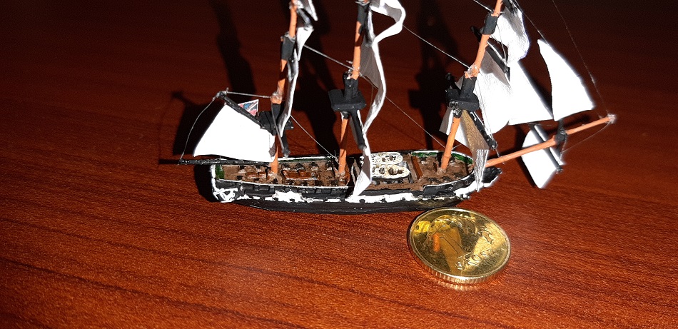 Na początku byłem sceptycznie podchodziłem do mikro modeli, a szczególnie żaglowców w 1/1200, wręcz plułem jadem, ale jakimś dziwnym zbiegiem okoliczności wpadłem w posiadanie owego "zestawu". Jest to żywiczny odlew, jak na tą skale to jest nawet nawet, pręty z których są maszty wyjątkowo fajnie reagują na CA, "linki" w właściwie nitki wiodącej do much jest aż nadto... Ja to traktuje bardziej jako ciekawostkę i wstęp do późniejszych dioram związanych z morzem. Te modele można będzie też wykorzystać do gry strategicznej o żaglowcach, np zmierzch żagla. Ale jako model-tudzież ozdoba też się sprawdzi.