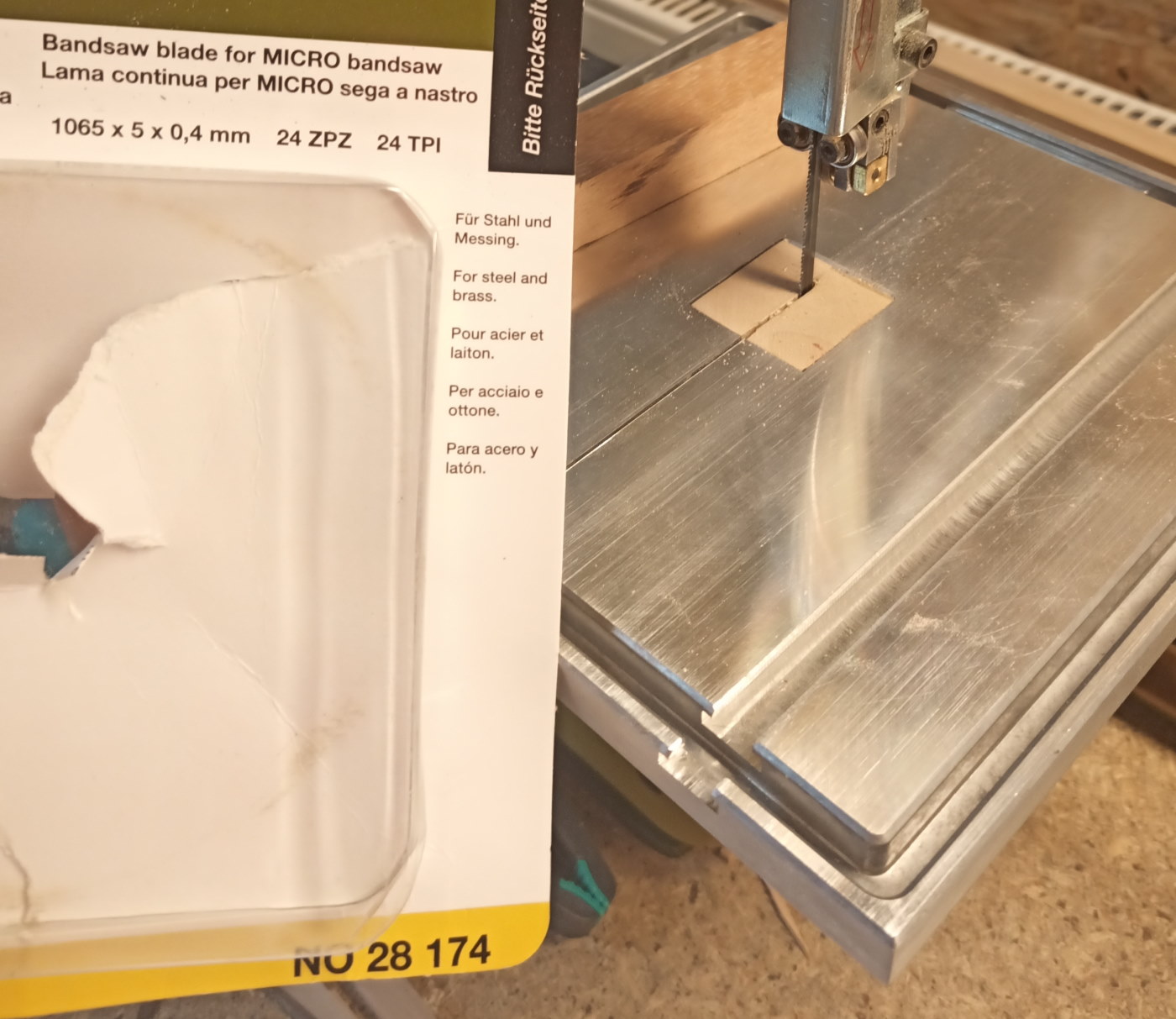 Dochodzi do tego ratowanie kciuka przeciętego skalpelem (a niedawno Ataman ostrzegał) i wymiana zerwanej taśmy oraz wkładki w pile na typ "zero luzu" (wreszcie się zmobilizowałem). Modernizacja piły dała w efekcie delikatniejsze cięcie oraz możliwość wycinania listewek mniejszych niż 1x1mm.