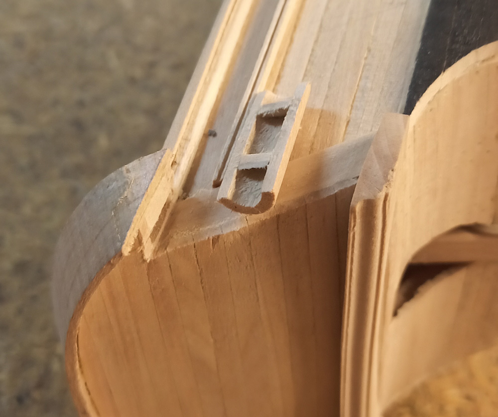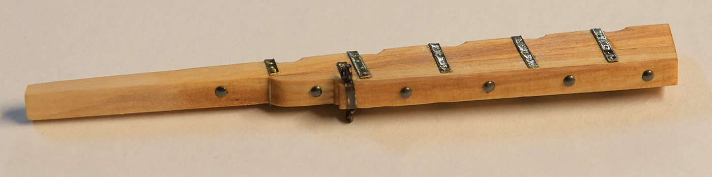 Nie mogłem się doczekać, aby zobaczyć docelowy kolor użytego drewna (olcha, głóg, kawałek egzotyka) i kilka elementów pomalowałem olejem. Trwa montaż burt. Tutaj trochę czasu minie, jest bowiem sporo drobnych akcesoriów, a i samo poszycie jest czasochłonne (1 planka dziennie)