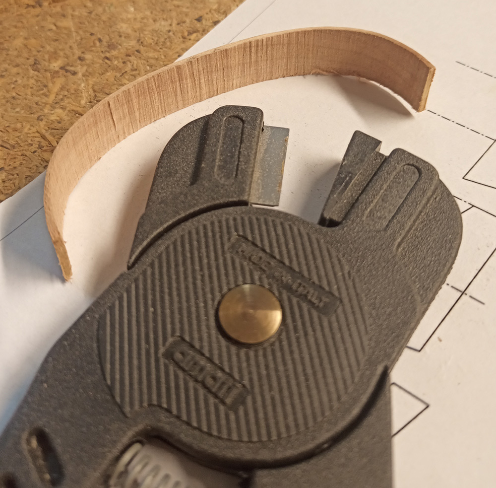 Przy takiej niewielkiej jednostce nie idzie się znużyć jedną czynnością. Chwilowo pokazuję bałagan w procesie technologicznym, ale w tym szaleństwie jest metoda. Pokładniki schną po wyginaniu na mokro, coś się klei, w tym czasie tnę i robię ściankę. Słowem działam na wielu frontach.