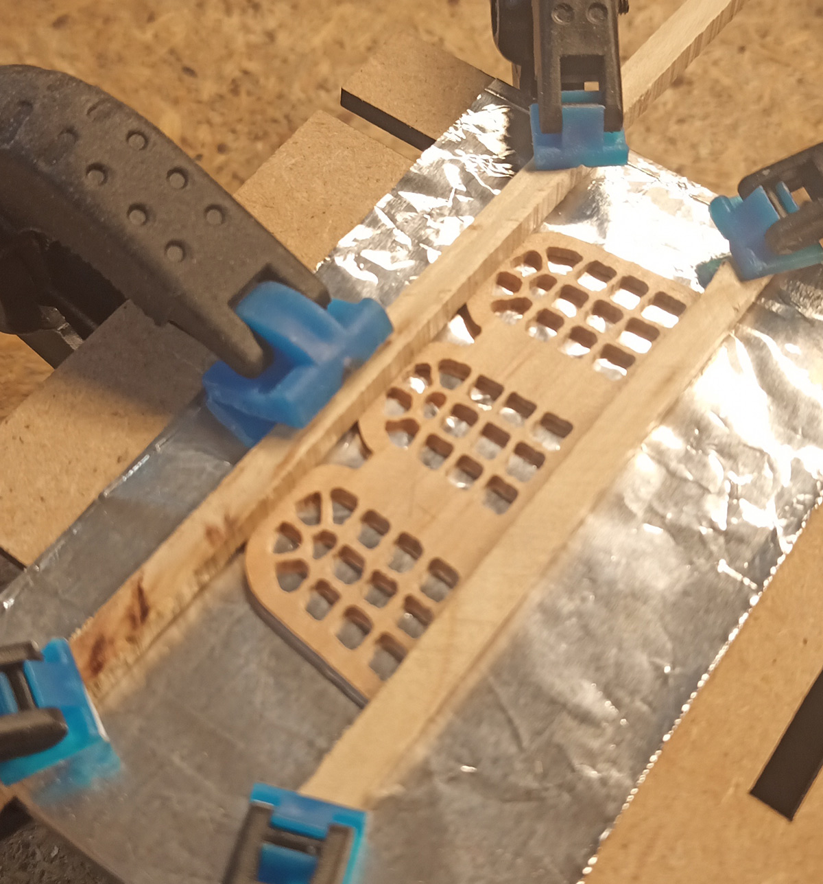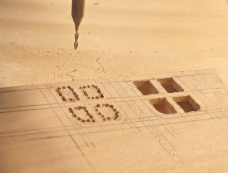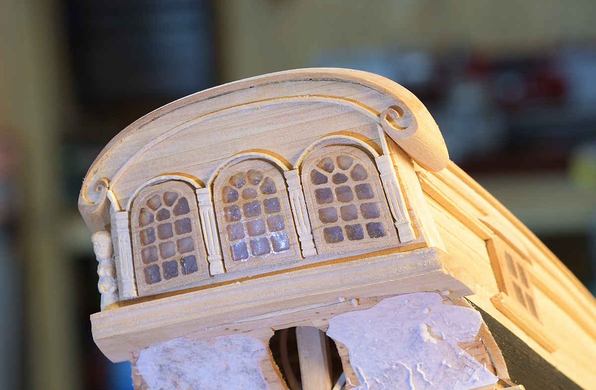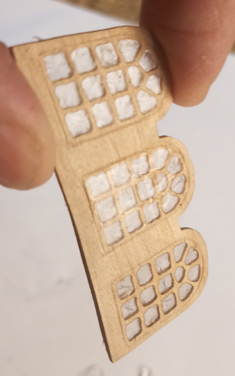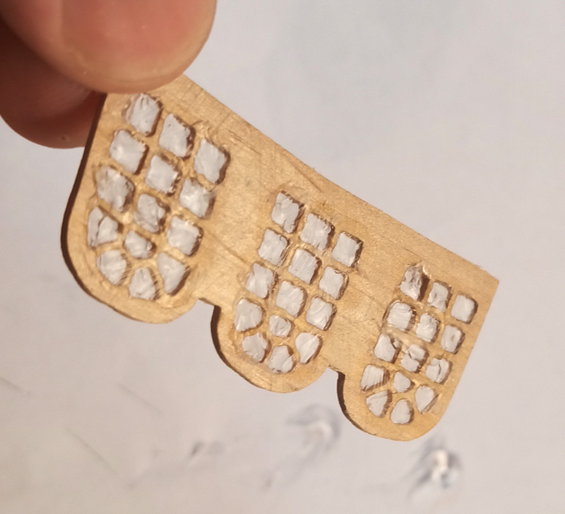 Zrobiłem okienka. Uparłem się w dalszym ciągu na ten mój silikon. Zastosowałem tylko inne podejście. Stronę reprezentacyjną przycisnąłem do folii spożywczej, silikon wyciskałem bezpośrednio z tuby, po zaschnięciu tył wyrównałem skalpelem.