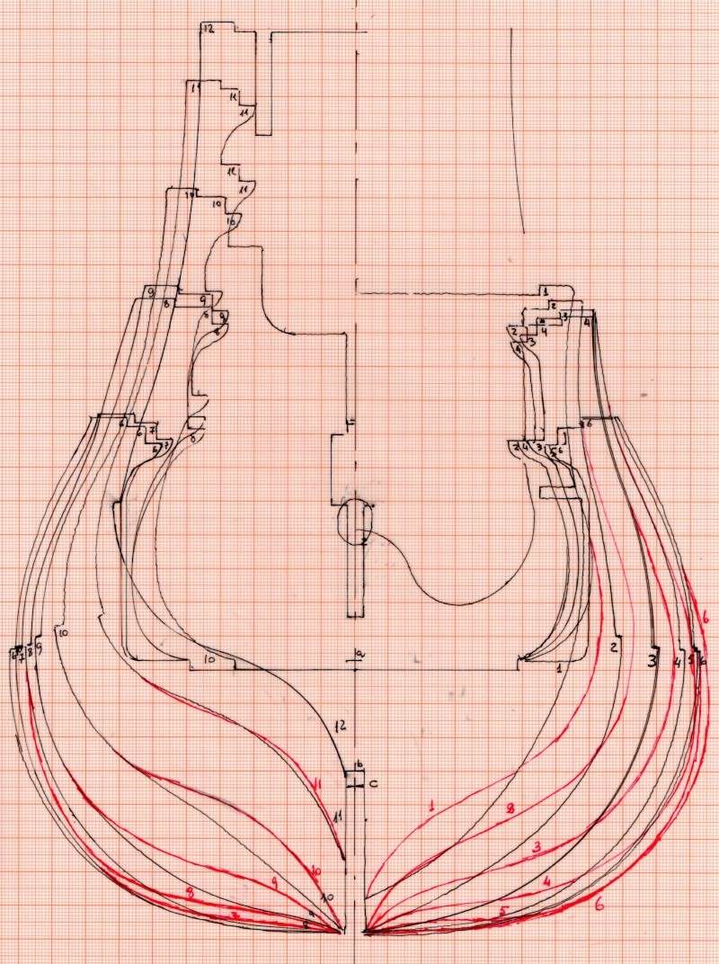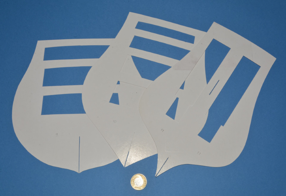 Na potrzeby mojej sekcji wykorzystam wręgi 11, 12 i 13 (pawęż z modyfikacją ażurów jak w zestawie Sergal-Mantua). Wręgę 10 będę rozrysowywał sam na podst. modelu próbnego.