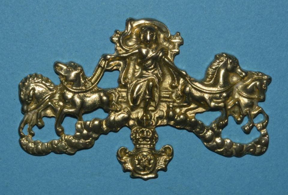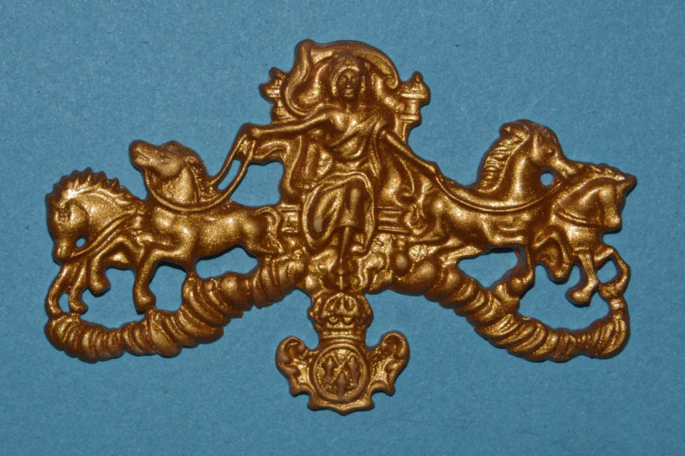 Metalowy odlew, mosiądzowany (efekt złocenia).