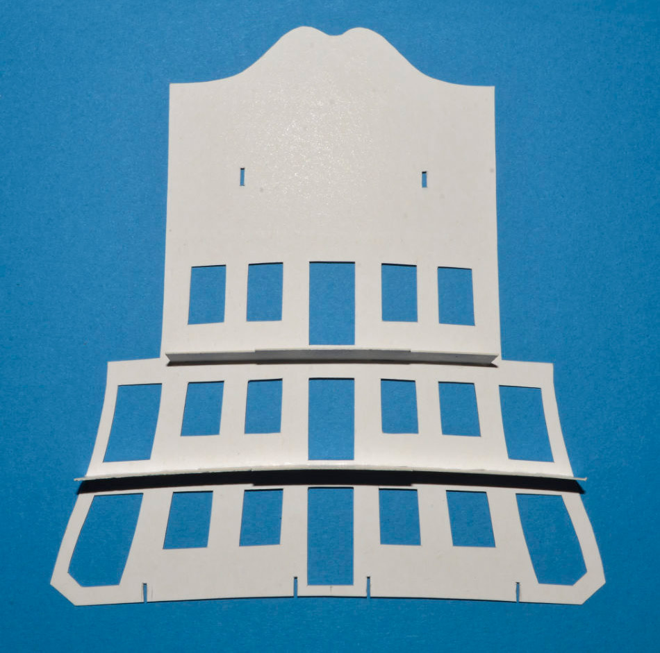 Zacząłem wklejać elementy (barierki) środkowego i górnego balkonu.