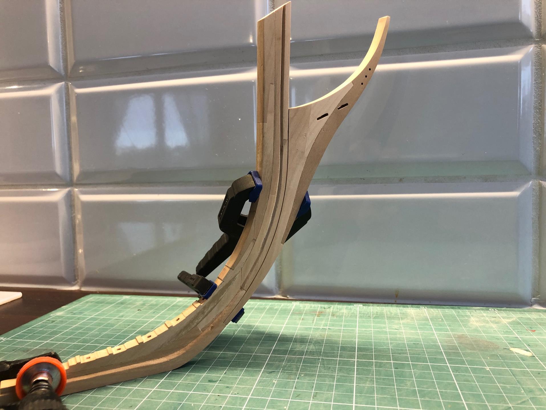 Uporałem się ze stępką w części dziobowej. Zdecydowanie najtrudniejsze elementy do tej pory.