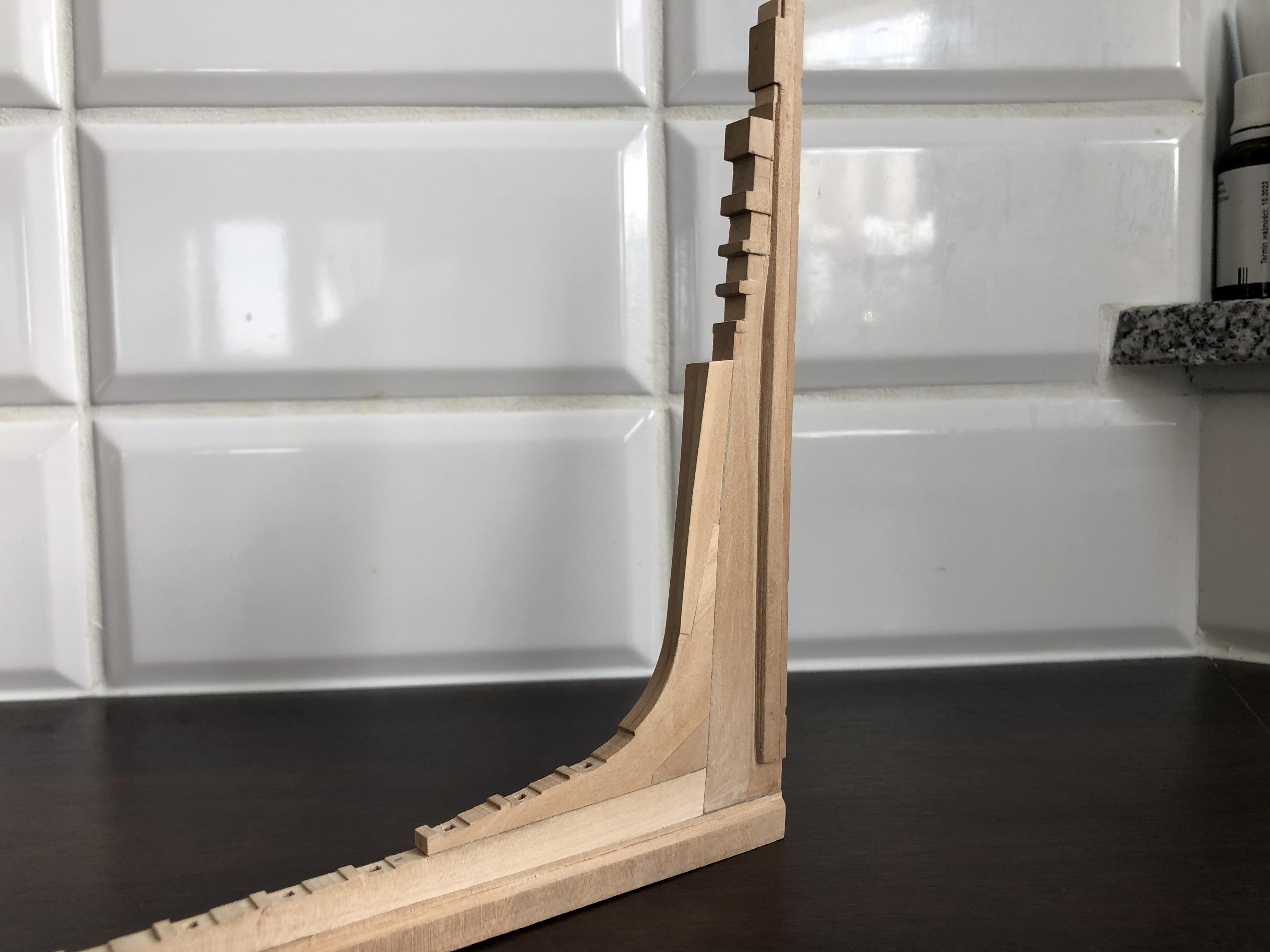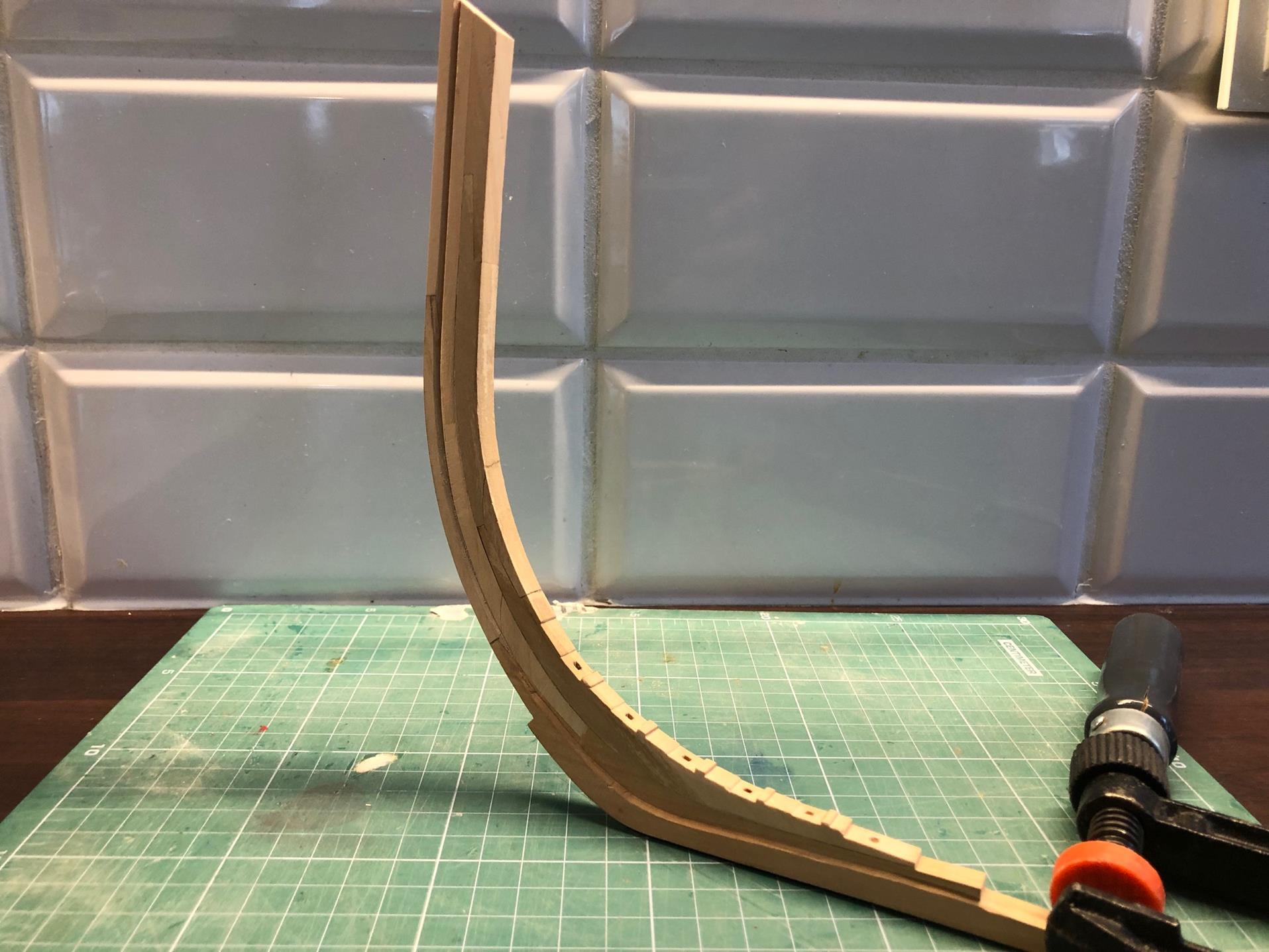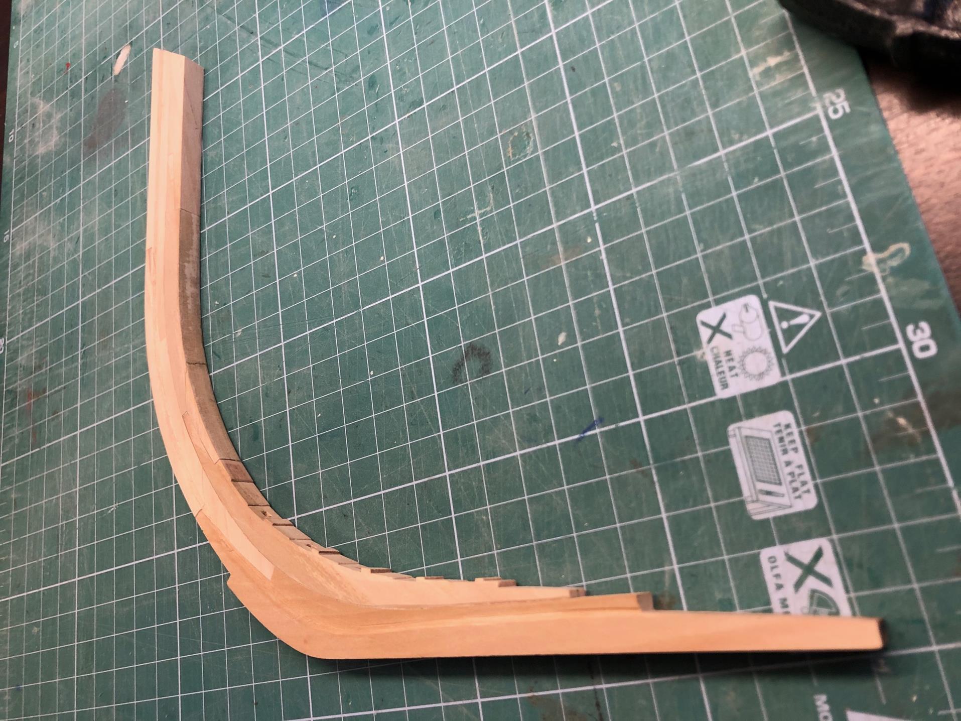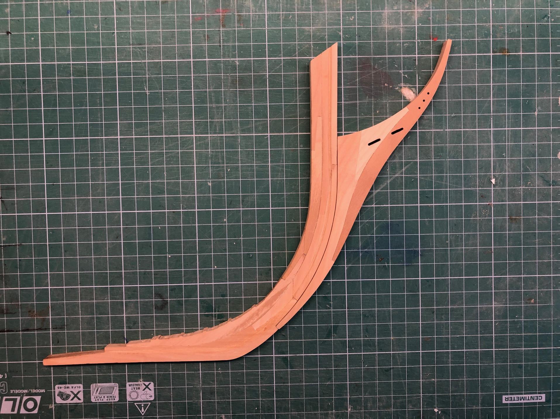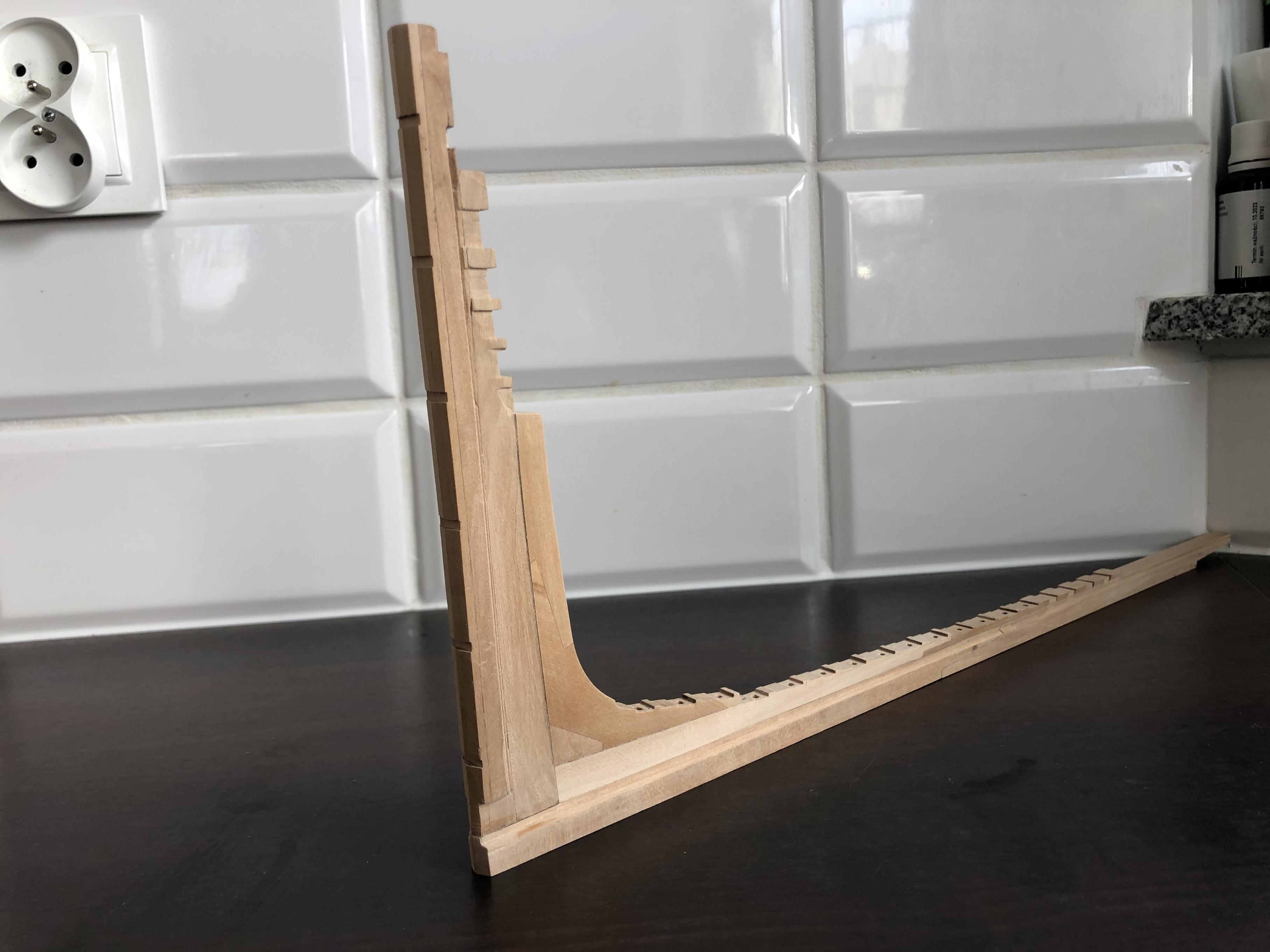 Uporałem się ze stępką w części dziobowej. Zdecydowanie najtrudniejsze elementy do tej pory.