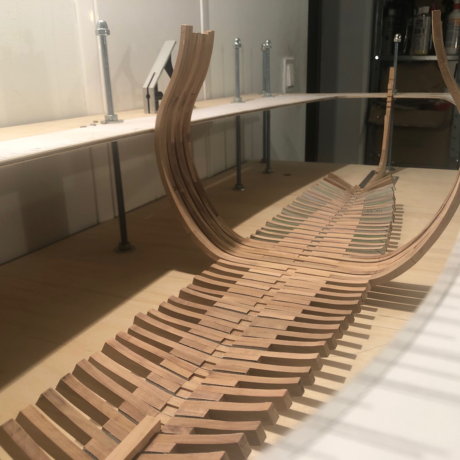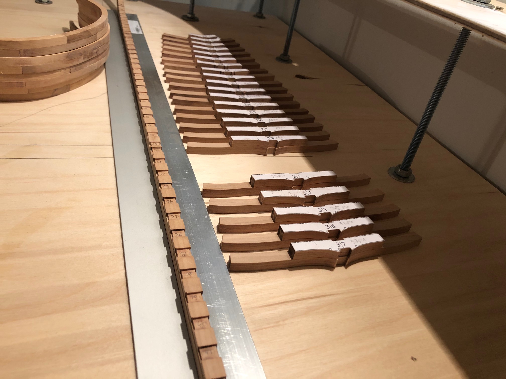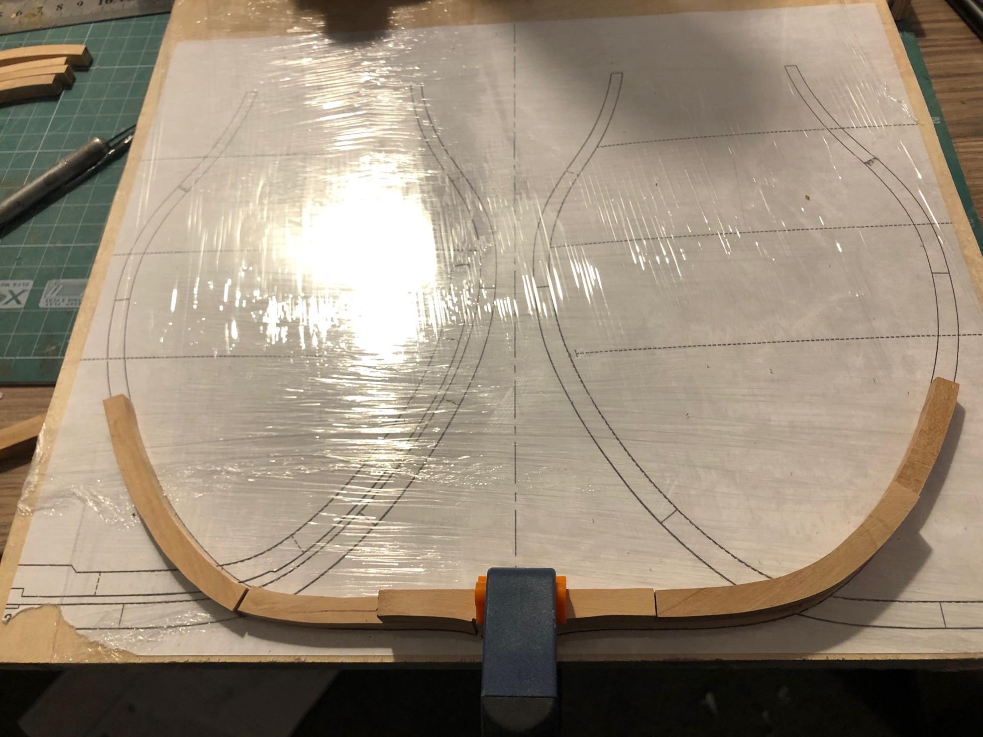 Pomału kleję wręgi. Sprawiłem sobie heblarkę, co znacznie sprawę przyśpiesza.