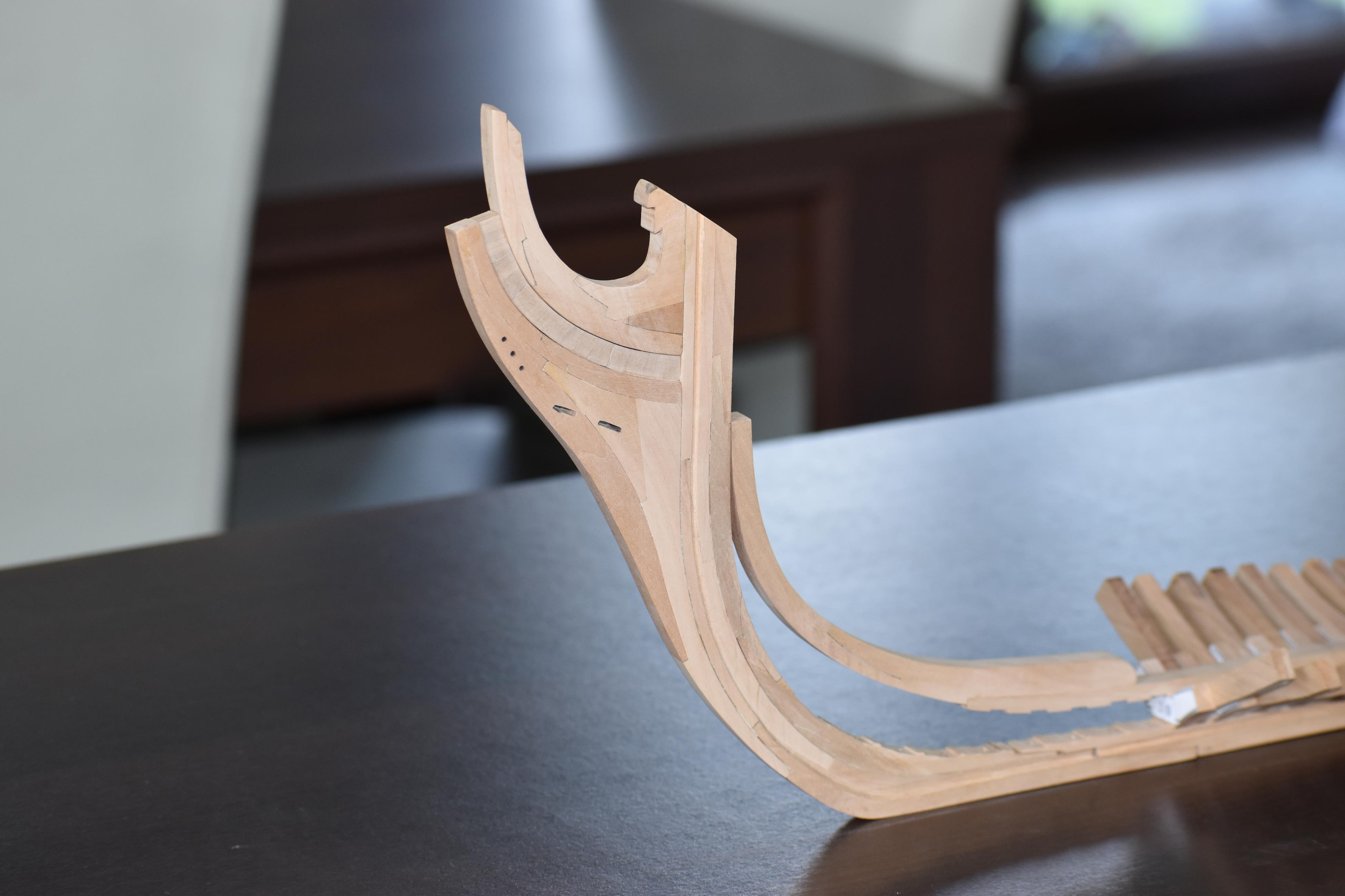 Uwazaj przy fabrykacji wreg dziobowych, tzw. hawse frames (hawse pieces), ustawionych pod zmieniajacymi sie katami do kilu. Jesli nie masz w swych planach wyrysowanych ich indywidualnych profili (przedni i tylny), trzeba Ci bedzie sobie wyrysowac je wlasnorecznie - latwo wtedy sie kropnac i zrobic blad.