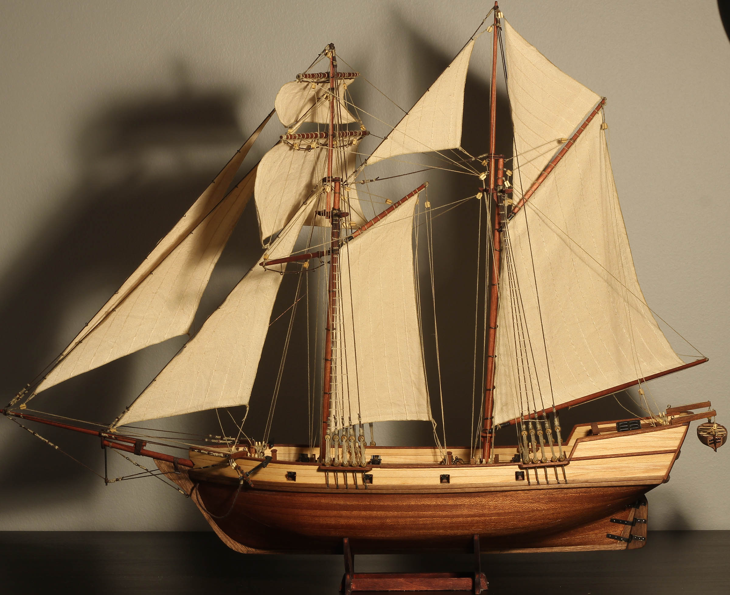 W planach nie ma nic o reflinkach. Chętnie bym je wplótł w żaglach gaflowych, ale bez żadnych wzmocnień to chyba nie ma sensu. Nie wiem też gdzie miały by być.