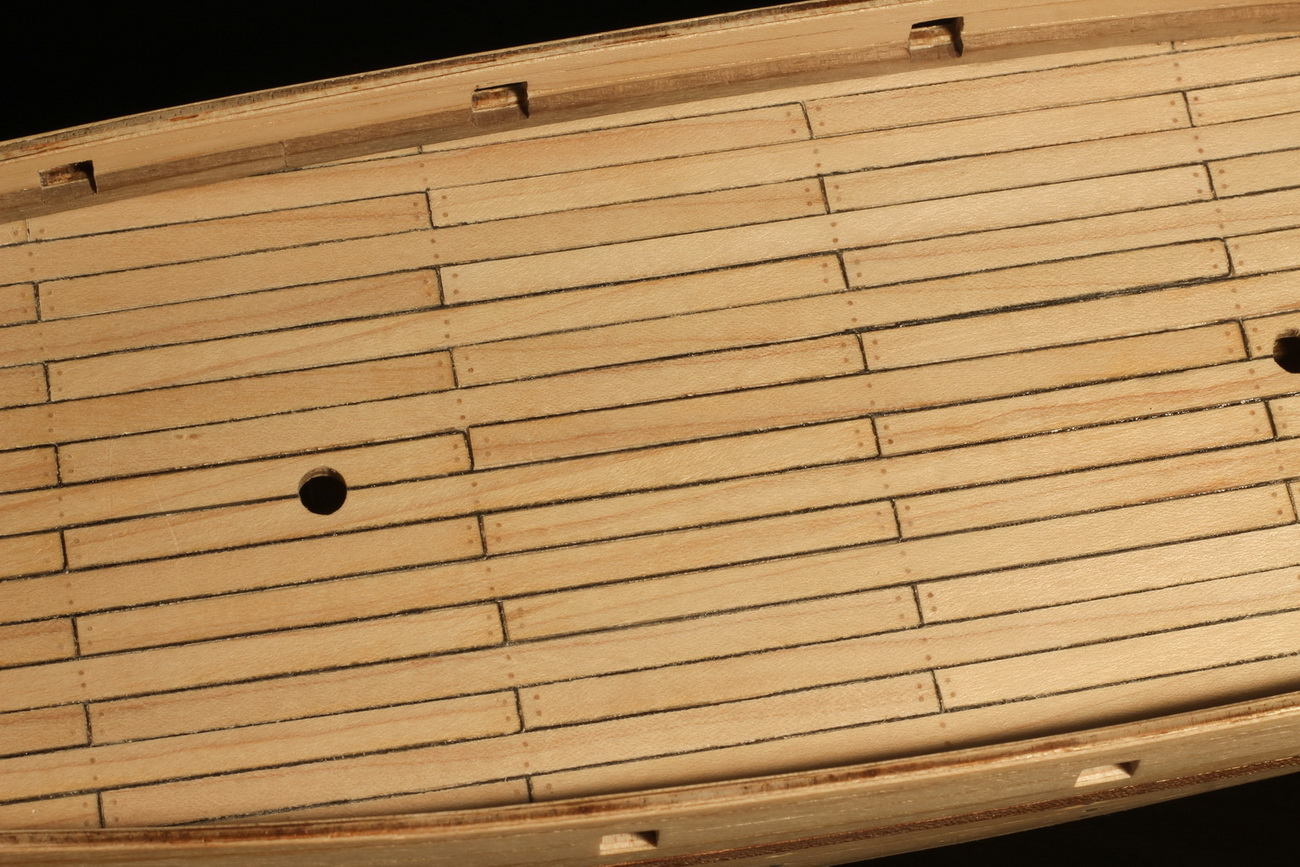 Szerokość deski pokładu zarówno na planie, jak i pociętego forniru to 5mm, uwzględniając skalę 1:100 deska miała w rzeczywistości 50 cm (19.68 cali) szerokości
