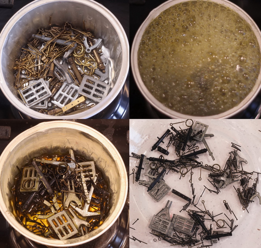 Ja byłbym mocno ostrożny z oksydowaniem na modelu. Jeżeli coś pocieknie na drewno, to może zabarwić na zielono. Elementy fototrawione słabo wchodzą w reakcję z oksydą.