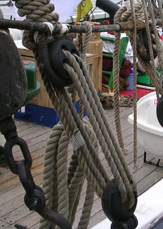 Na Albatrosie zbuchtowałbym i zaknagował zapas liny, a po stronie szalupy dał jakiś rozwiązywalny węzeł albo hak. Można by też pomyśleć o taliach pod żurawiem i puszczenie pojedynczej liny na pokład.