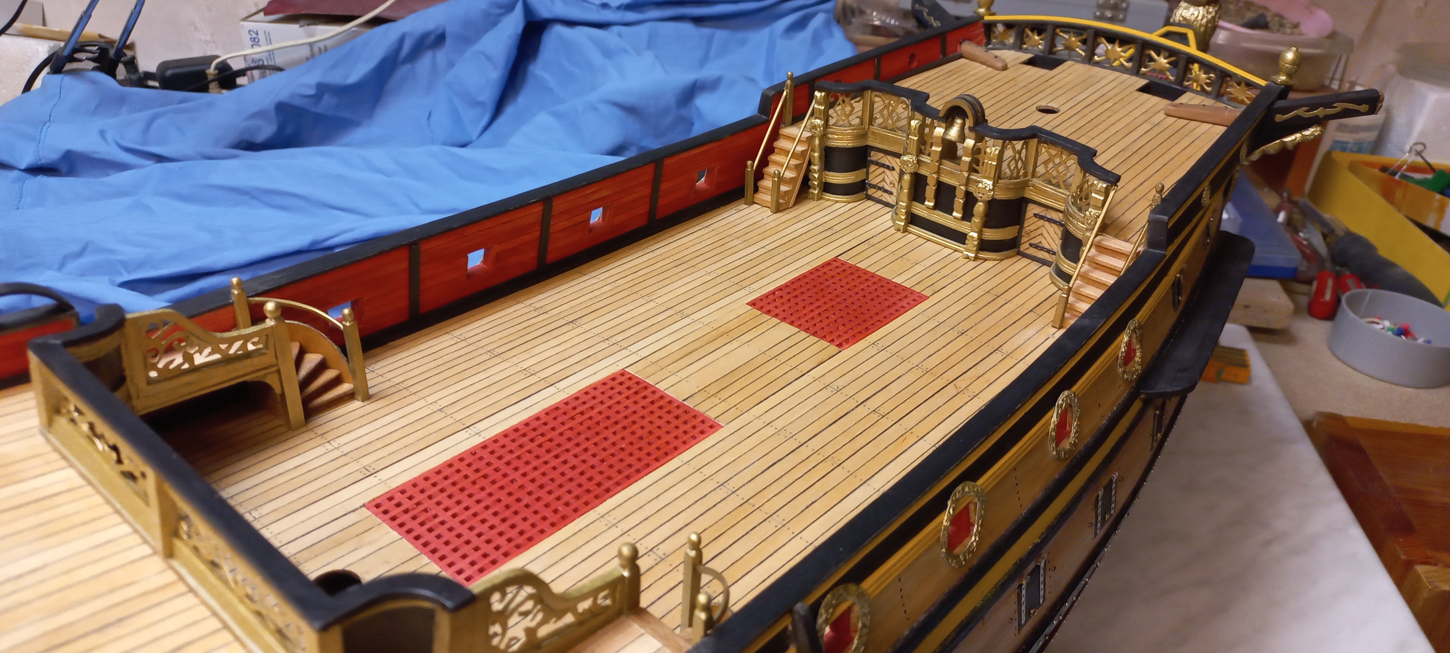 Dzięki Wam. :) Ryszard,wymęczyłem jakoś te poręcze.Zamknąłem pokłady.Teraz zaczną się detale wyposażenia pokładów,burt itp.ale już na spokojnie.Idą święta...
