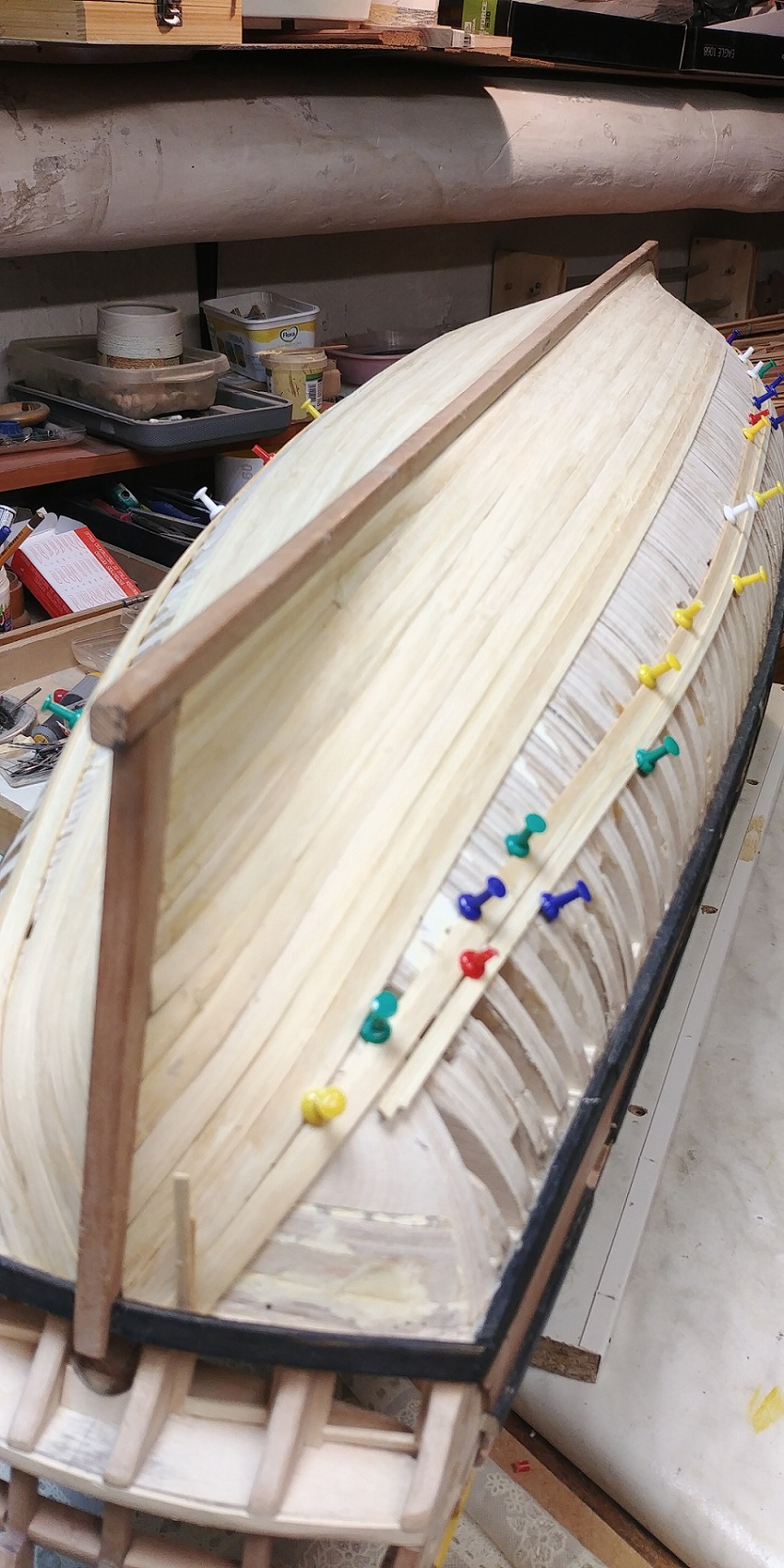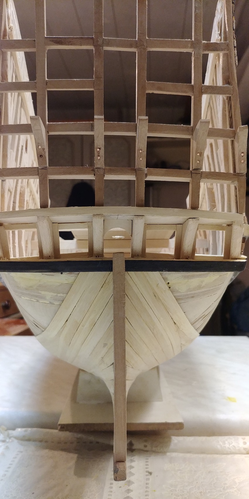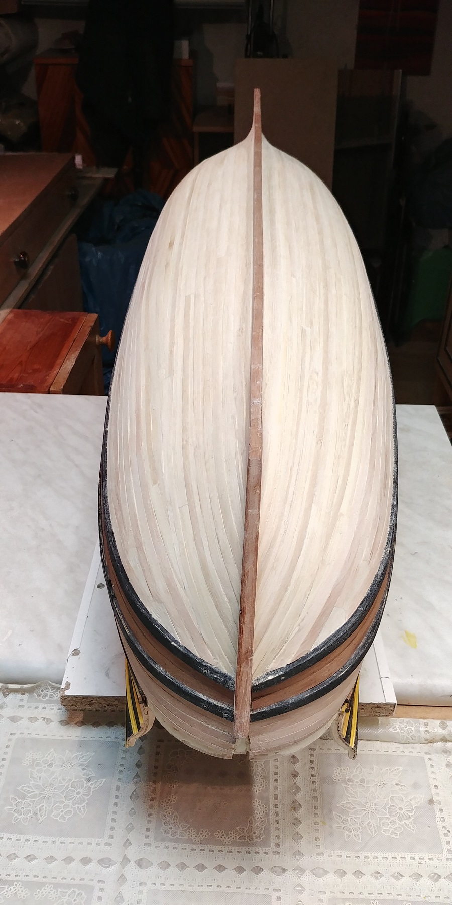Spód będzie malowany "farbom"więc wszystkie odstępstwa od reguł szkutniczych będą niewidoczne.