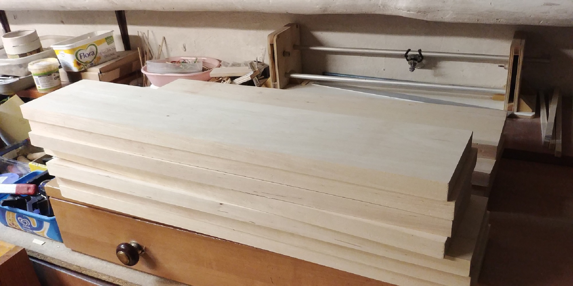 Ubrałem kadłub.Materiału brakło więc zamówiłem w tartaku parę deseczek olchowych.Nieco czekałem ale przysłano materiał pierwsza klasa wysezonowany bez przebarwień i jednolity.Starczy i na pokłady.
