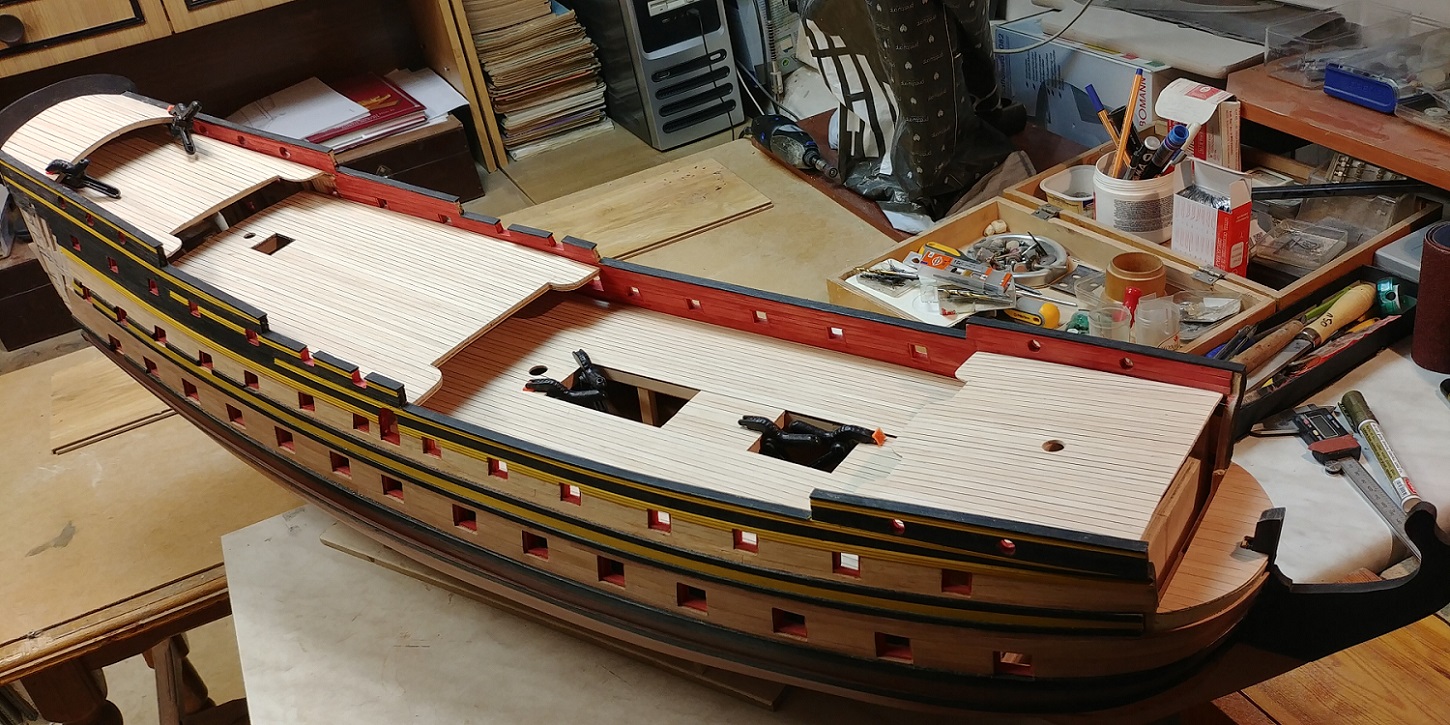 Witam po letniej przerwie.Aura pozwoliła wrócić do stoczniowych zajęć.Komplet pokładów, oczywiście w stanie surowym.I to tyle.Pozdrawiam.Kazimierz.