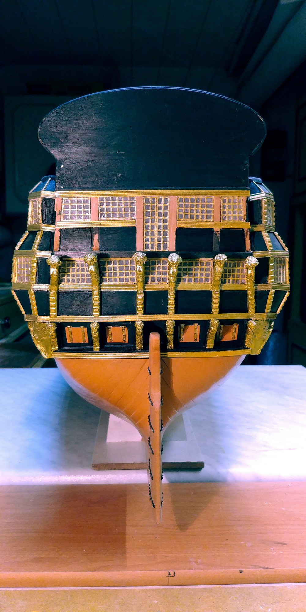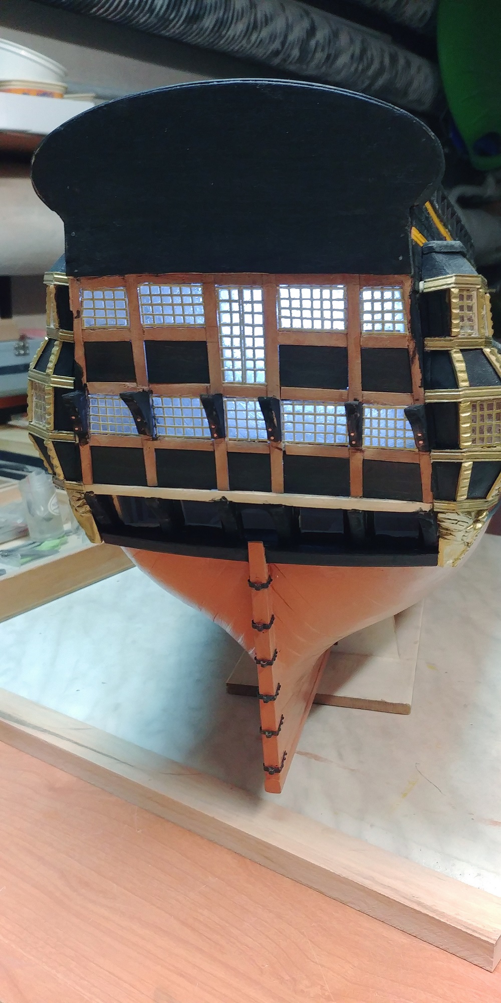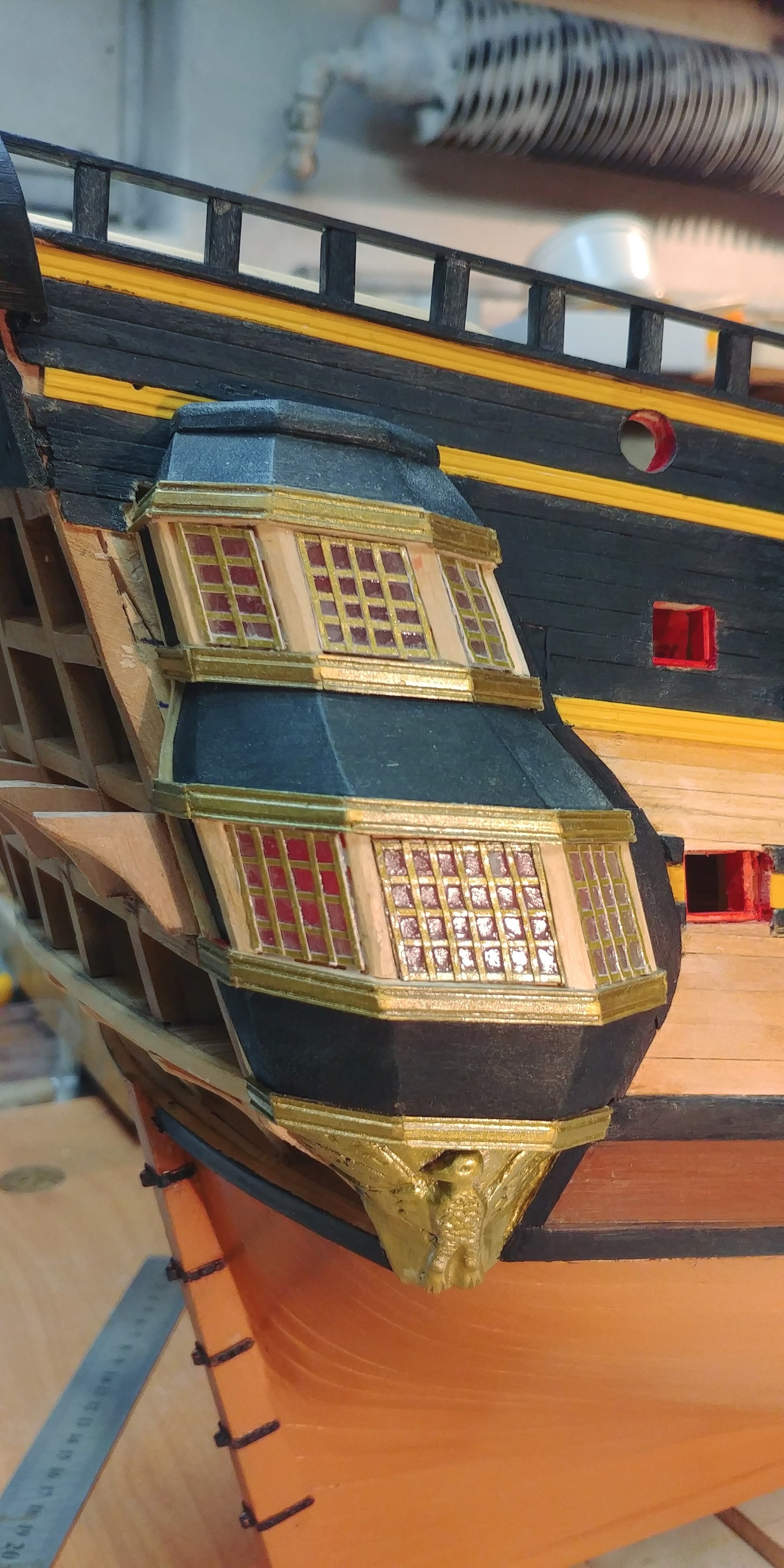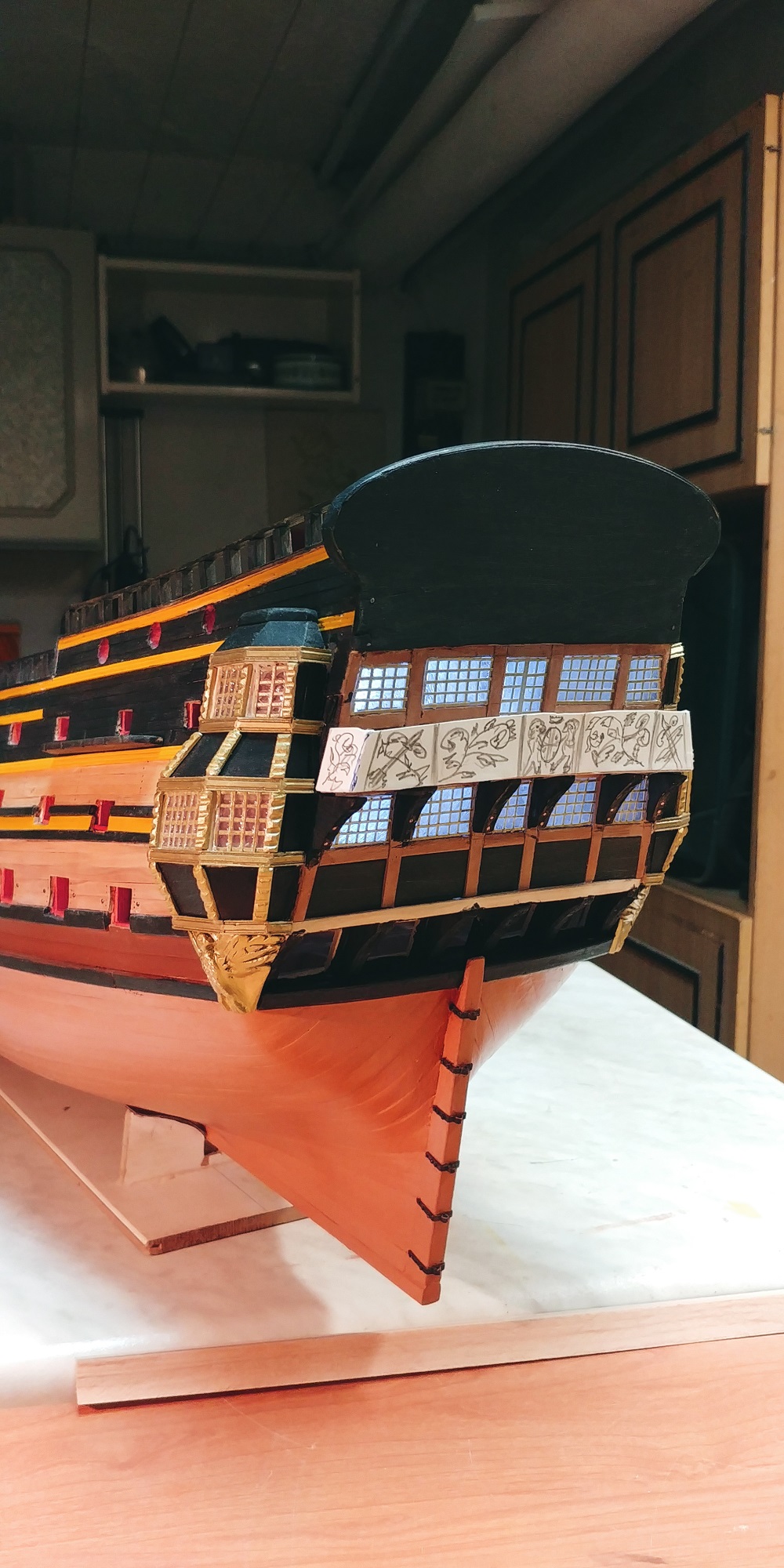 Metodą prób i błędów udało mi się jakoś "ulepić"kosz dziobowy.Kariatydy i te inne babo-chłopki zostawię na póżniej,jak nadejdzie wena.Narazie zabiorę się za łatwiejsze rzeczy.