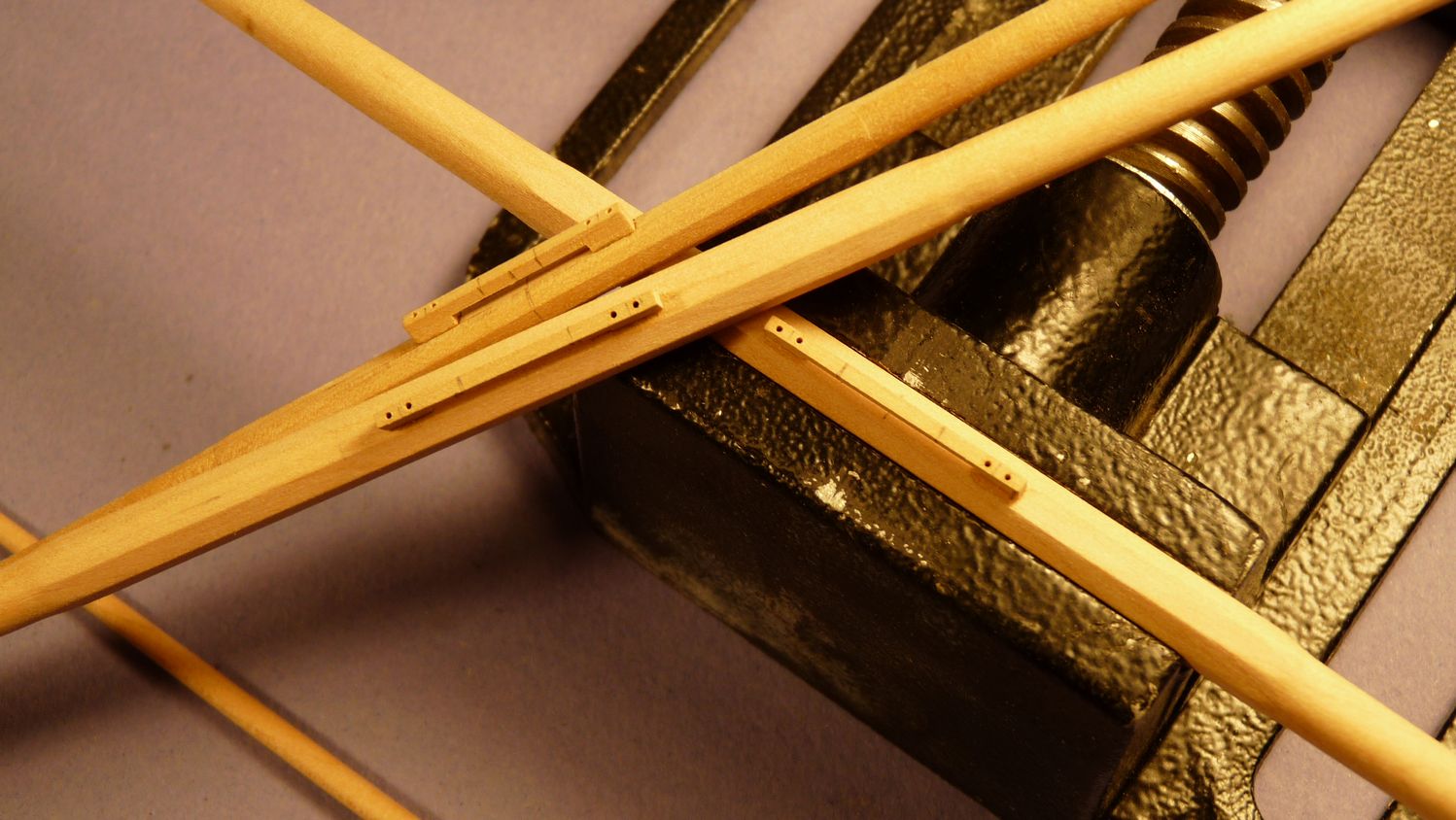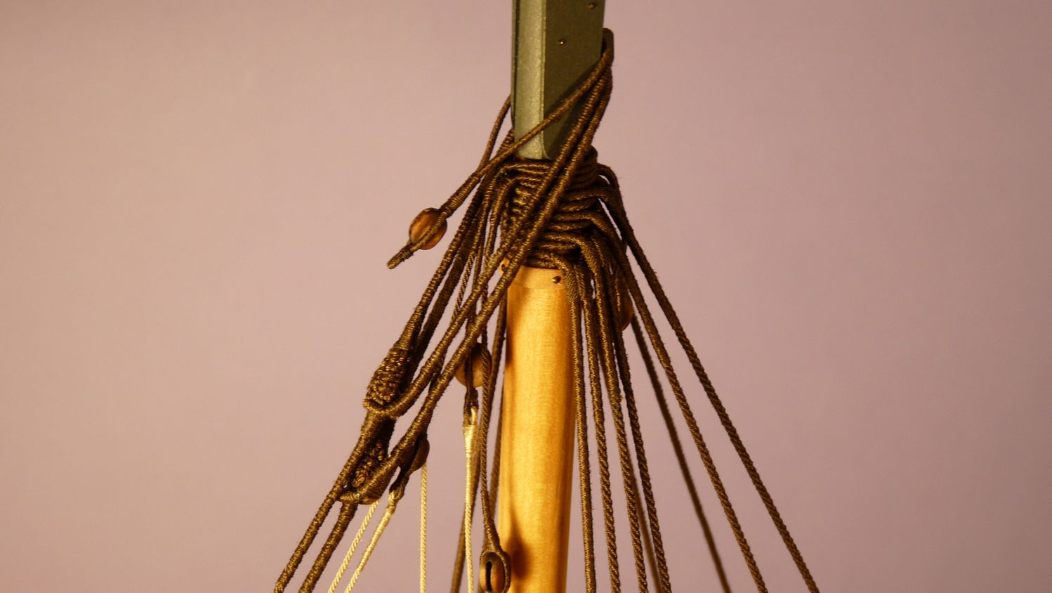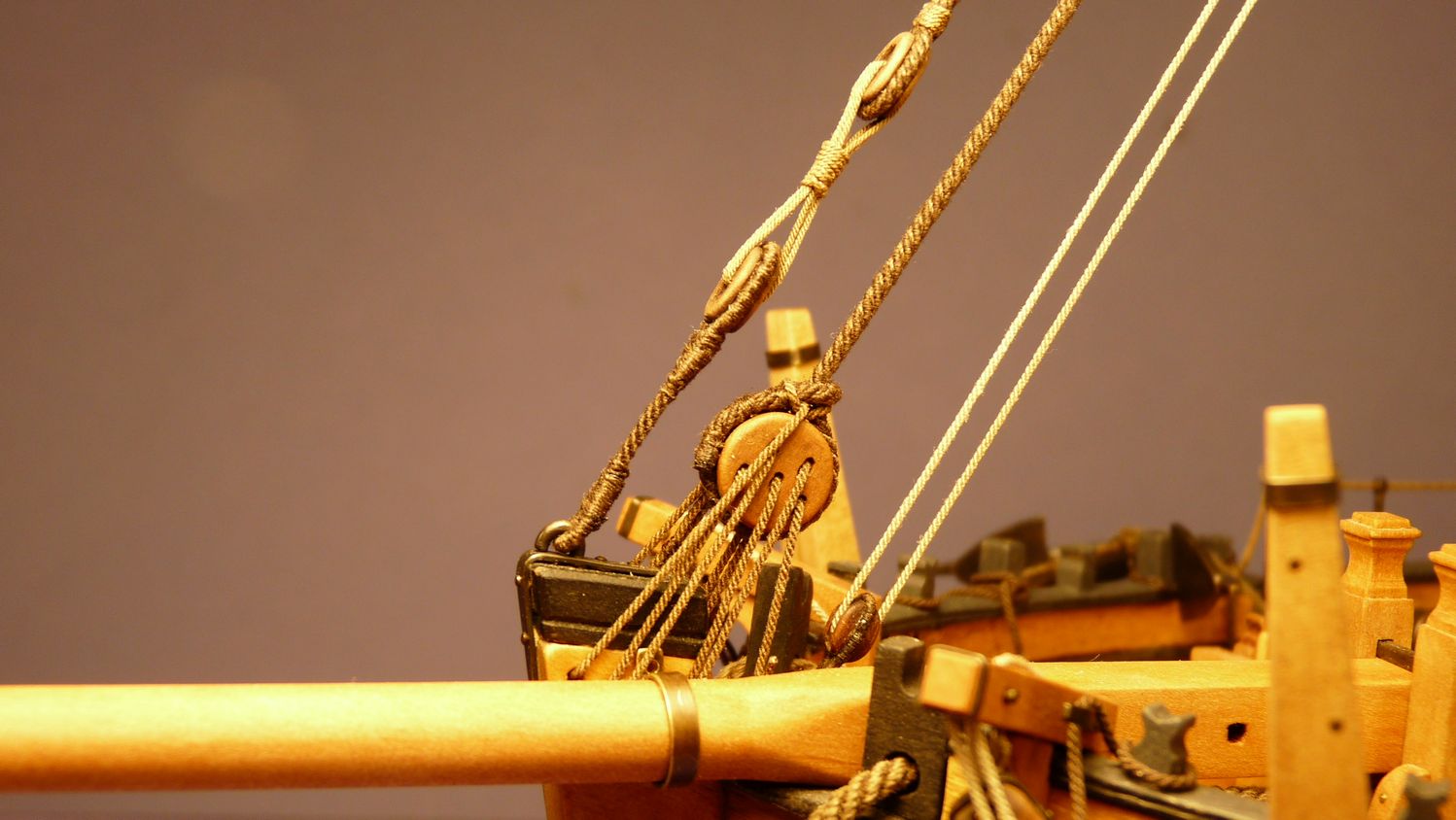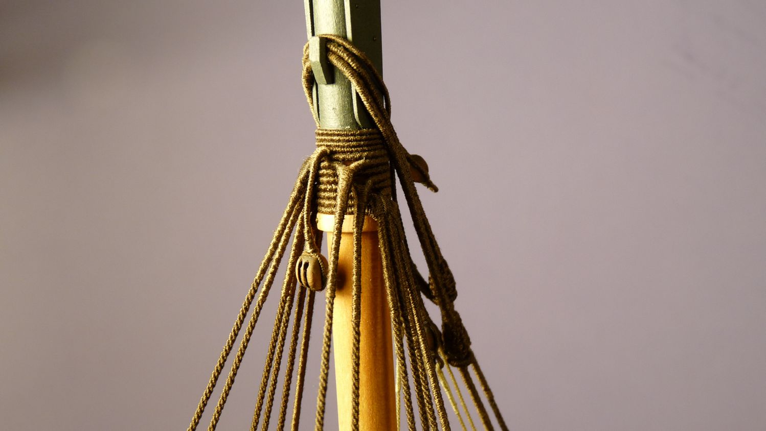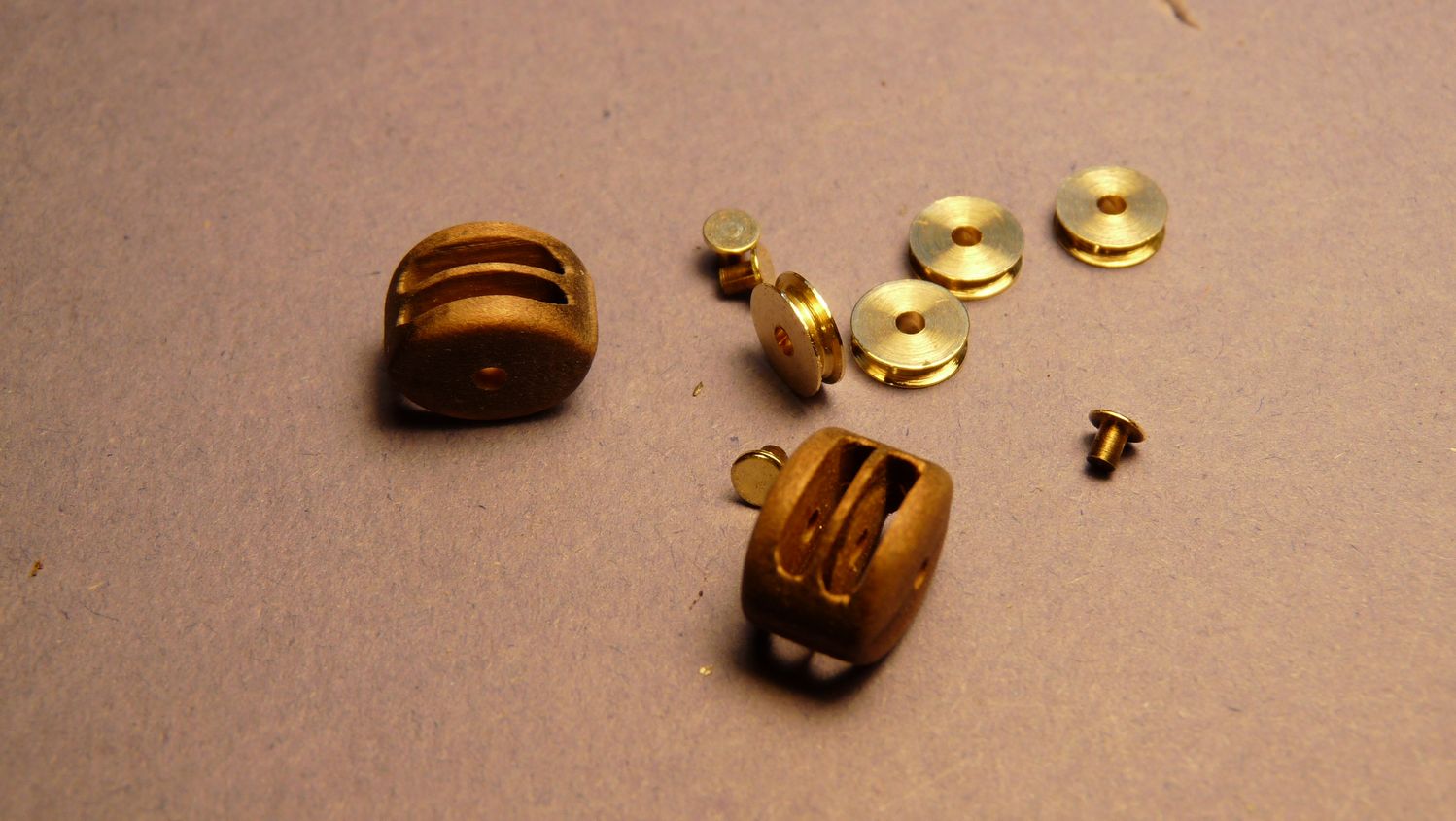 Ciekawy jest ten inny niz zazwyczaj jufers (czy moze heart?) z piecioma otworami i jego uzycie w talrepie do zamocowania foksztagu do kilu (stewy dziobowej) - widze cos takiego po raz pierwszy!