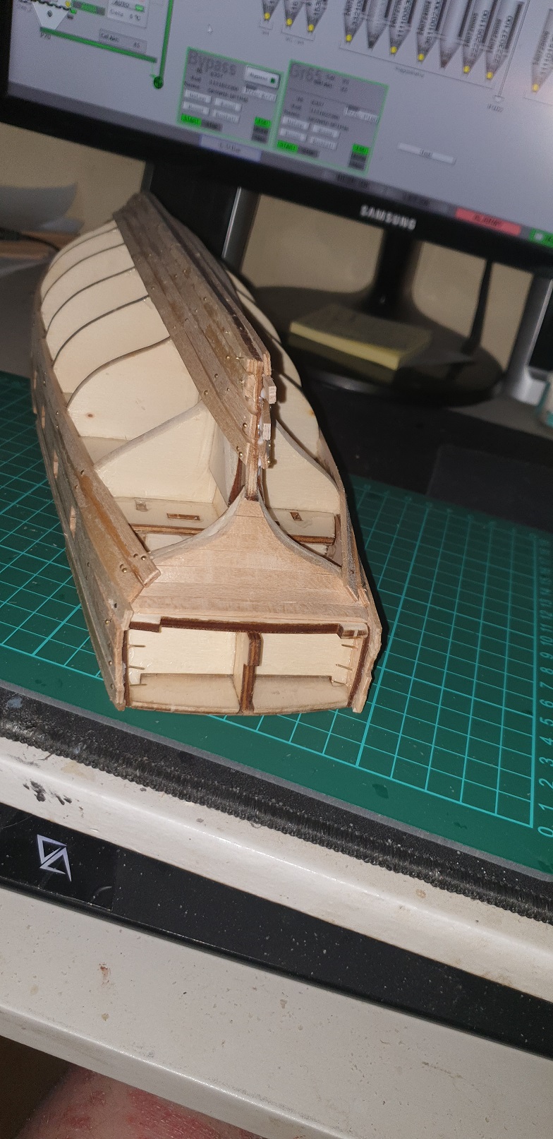 Na tym zdjęciu widać ze przy krawędzi miejsca gdzie będzie przyklejony kil jest łuk.
