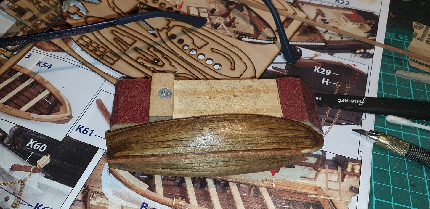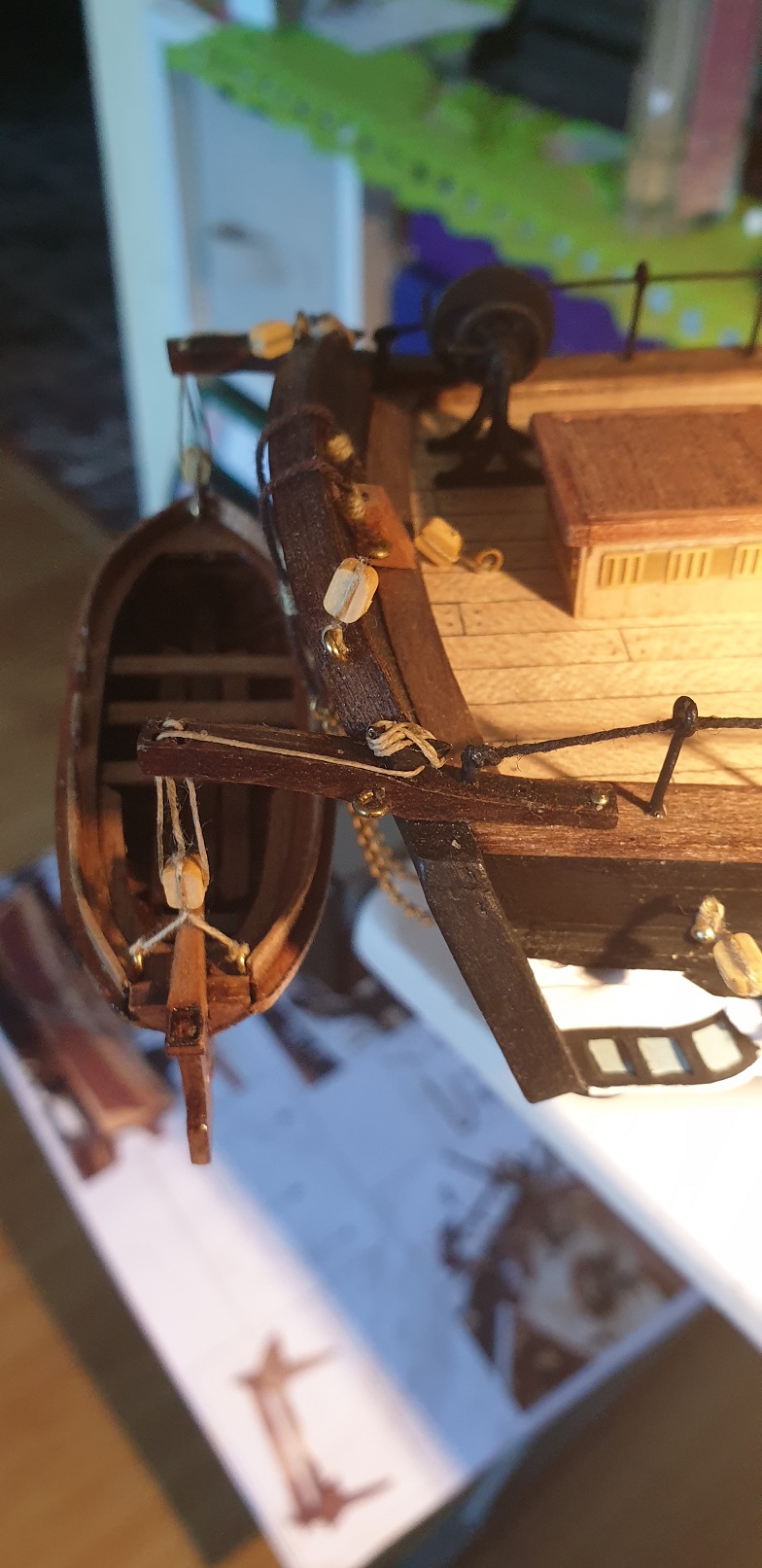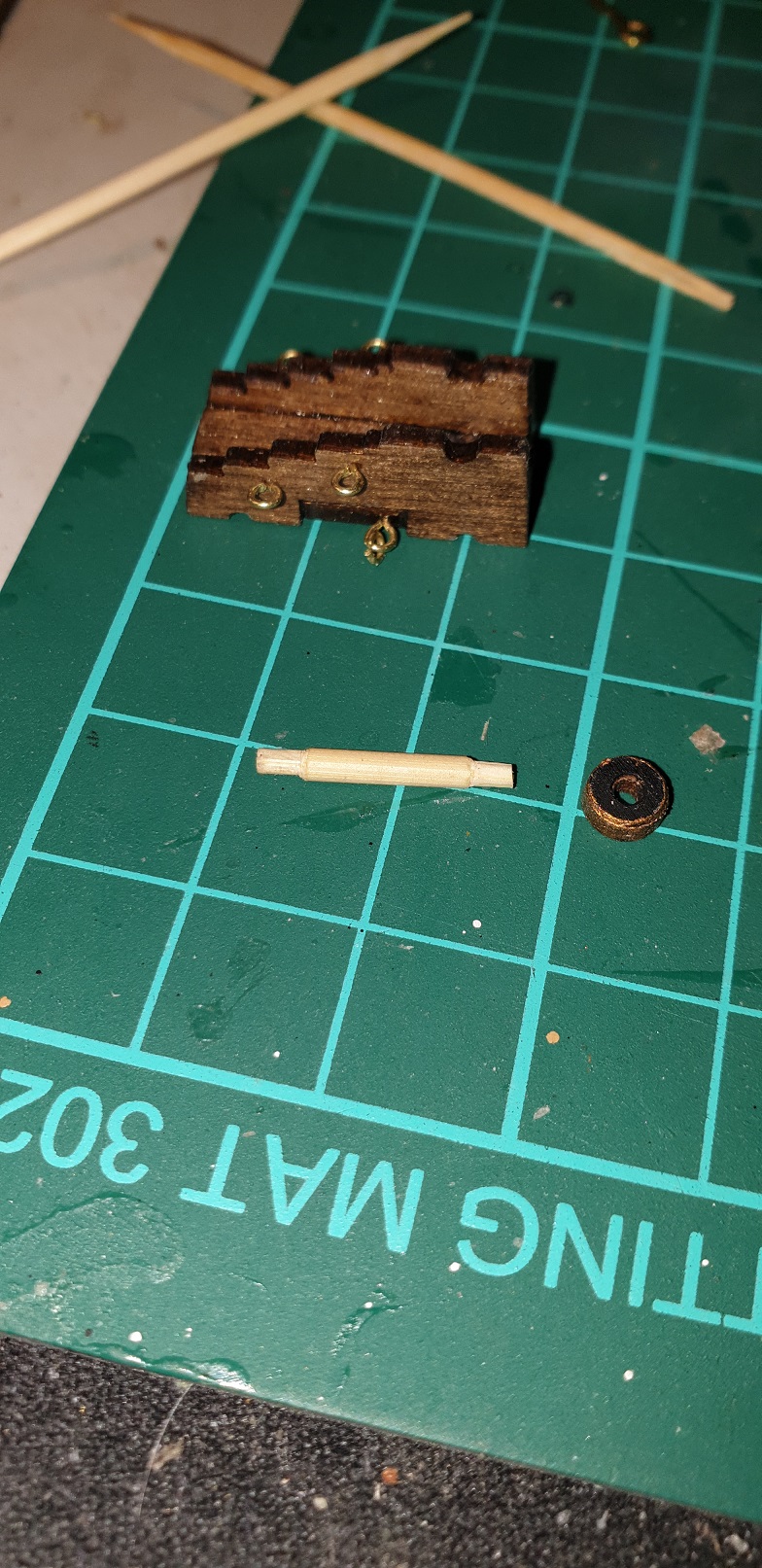 O ile wiem to oryginalnie były one na pewno drewniane oraz zrobiłem nowe oczka do lin żeby trochę dopasować skale