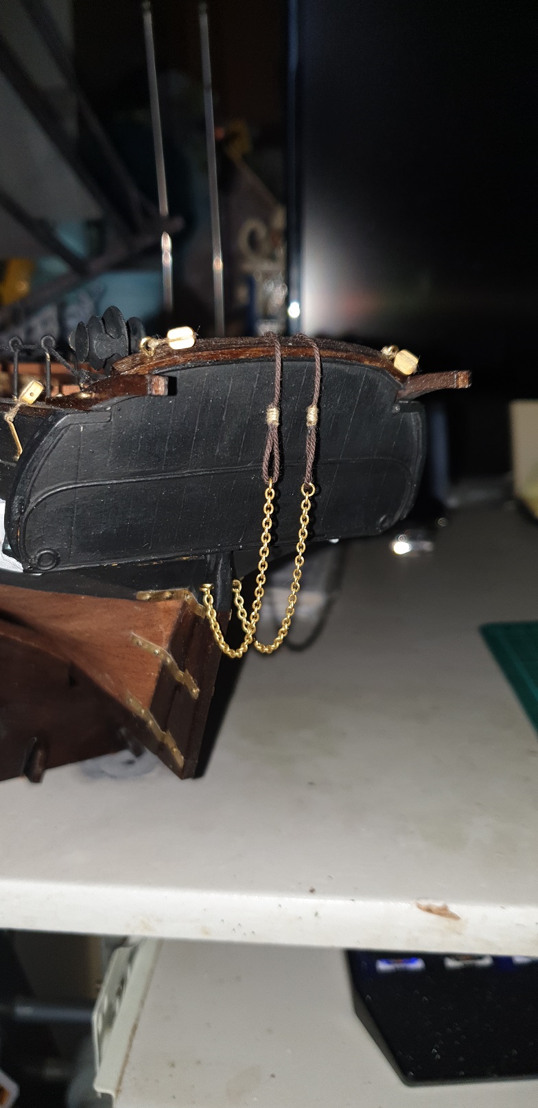 tu zrobiłem jak najbardziej zbliżone do oryginału mocowanie odciągów z łańcucha