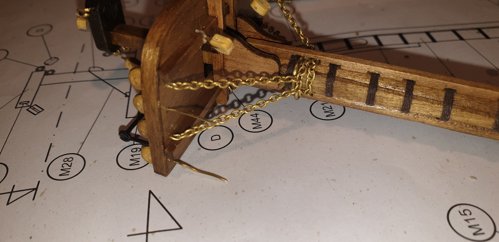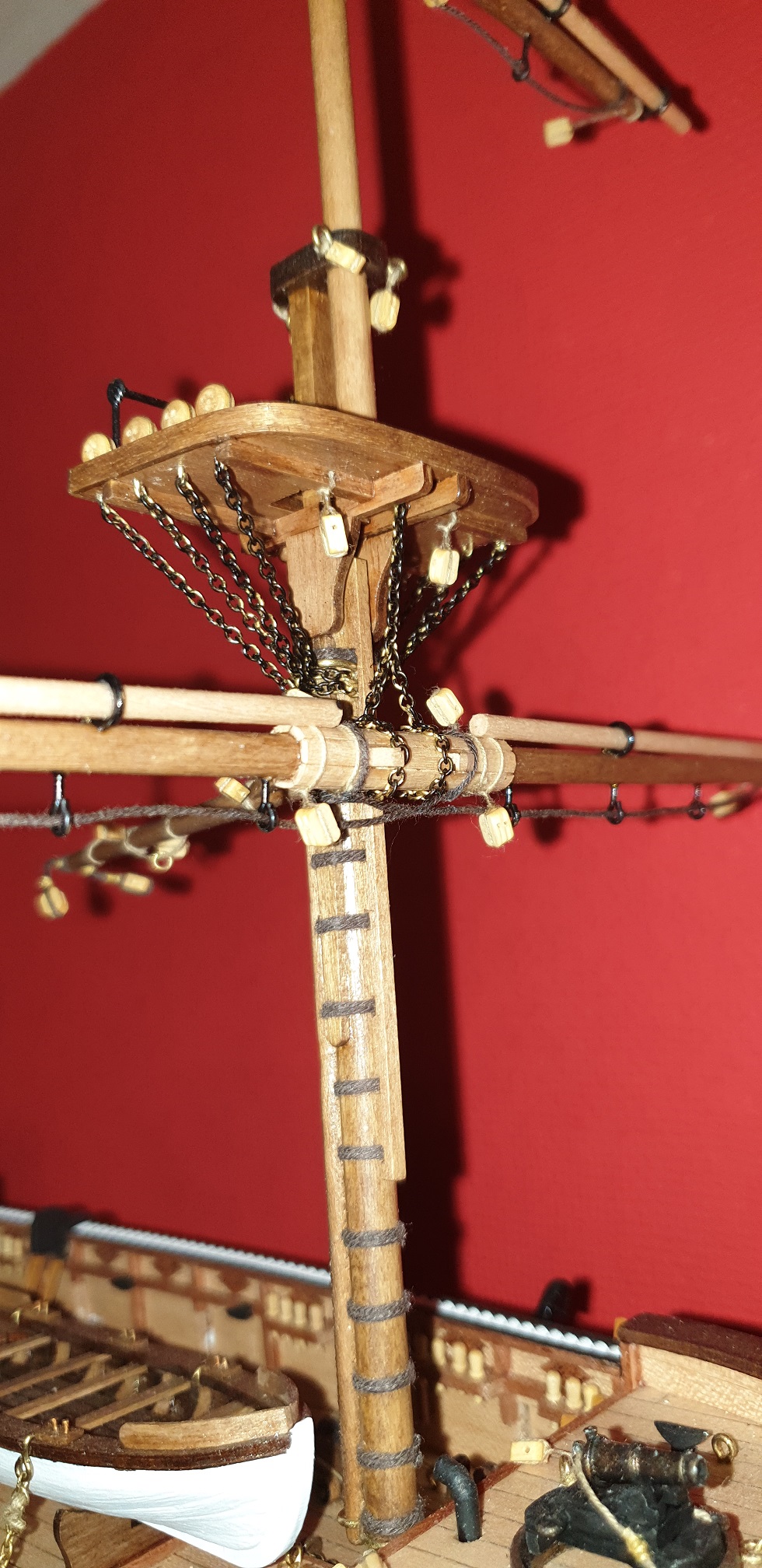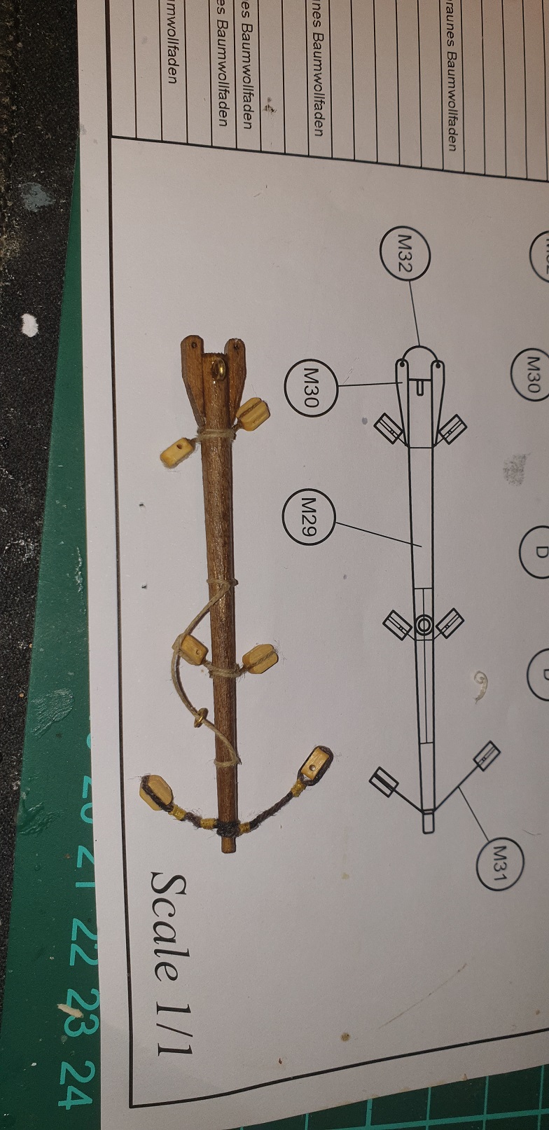 Mocowanie pierwszej głównej reji oparłem na rysunkach z książki. Chciałem się jak najbardziej zbliżyć do je mocowania wg rysunków