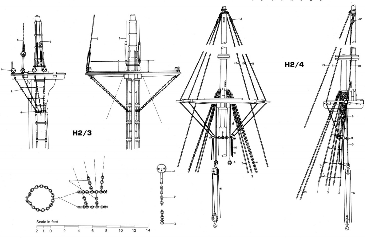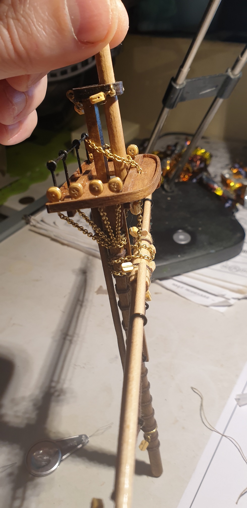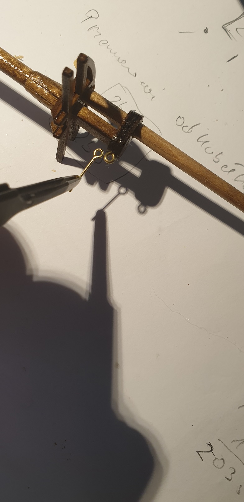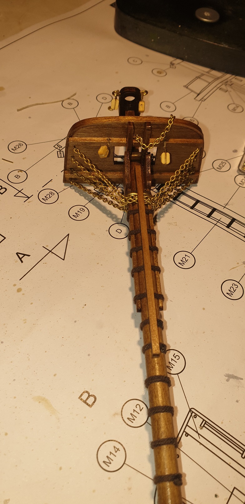 Mocowanie pierwszej głównej reji oparłem na rysunkach z książki. Chciałem się jak najbardziej zbliżyć do je mocowania wg rysunków