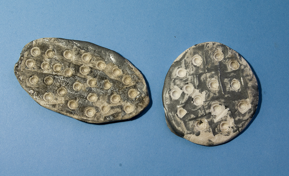 Inny problem to nity. Łepek szpilek które miałem wydawał się za duży, ma ok 1,5 mm, optymalne byłoby coś ok 1 mm. Nie udało mi się wymyśleć/znaleźć coś takiego, co by mi odpowiadało. W końcu kupiłem kulki jakieś do elektroniki 0,7 mm. Nawiercałem trochę i w ten nawiert wklejałem kulki. I tu też spotkałem się z problemem. Aplikacja kleju gęstego przerosła moje możliwości, ani patyczek, ani igła nie dawały rady. W końcu zdecydowałem się na klej rzadki z igłą-aplikatorem. Ale ten miał tendencje do wylewania i gdzieniegdzie widać otoczkę kleju wokół nitu. Docelowo jednak muszą być to jakieś szpilki. Tarcze pociąłem z wałka 20 mm (tu proxxon fet okazał się doskonały), długo kombinowałem jak zrobić umba. Szukałem gwoździ tapicerskich, czy tym podobnych okazów z półokrągłymi łebkami, jednak wszystko za wielkie, dobre do skali 1:25 (jak w zestawie) ale do 1:40 za wielkie. W końcu znalazłem plastikową rurkę o dobrym rozmiarze, w nią wkleiłem kulkę 3 mm i miałem matrycę do wyciśnięcia formy. Formę zrobiłem z modeliny i najpierw odlewałem ze stopu Wooda, ale jakoś mi się nie widziało, więc spróbowałem jak Karrex, z kleju dwuskładnikowego. Akurat trafiłem taki szary, imitujący kolorem metal. Ostatecznie wybrałem umba odlane z kleju. Kolejna zagłostka to wiązanie ściągaczy sztagów. W planach jest wiązanie na dwóch takich rogatych łącznikach. Zarówno Smolarek w publikacji o szkutnictwie wikingów, jak i różne stronki w necie pokazują wiązanie z użyciem jednego takiego rogatego. No i musiałem kombinować, jak to zawiązać na dwóch. Nie wiem, czy to poprawne wiązanie, ale z różnych kombinacji ta wydała mi się najlepsza, linki układają się najlepiej. No i model skończony. Posiada duuużo błędów, wiele rzeczy mi się tu nie podoba, to i owo nie jest takie, jak powinno….. ale z założenia był to model ćwiczebny, taki do wyłapania błędów i sprawdzenia rozwiązań. Teraz będę się zbierał do budowy modelu już dokładnie wg planów łodzi z Oseberg, wykorzystując doświadczenia tu zdobyte, i mam nadzieję już bez błędów które tu się pojawiły. … Tylko nie wiem, kiedy się za to zabiorę
