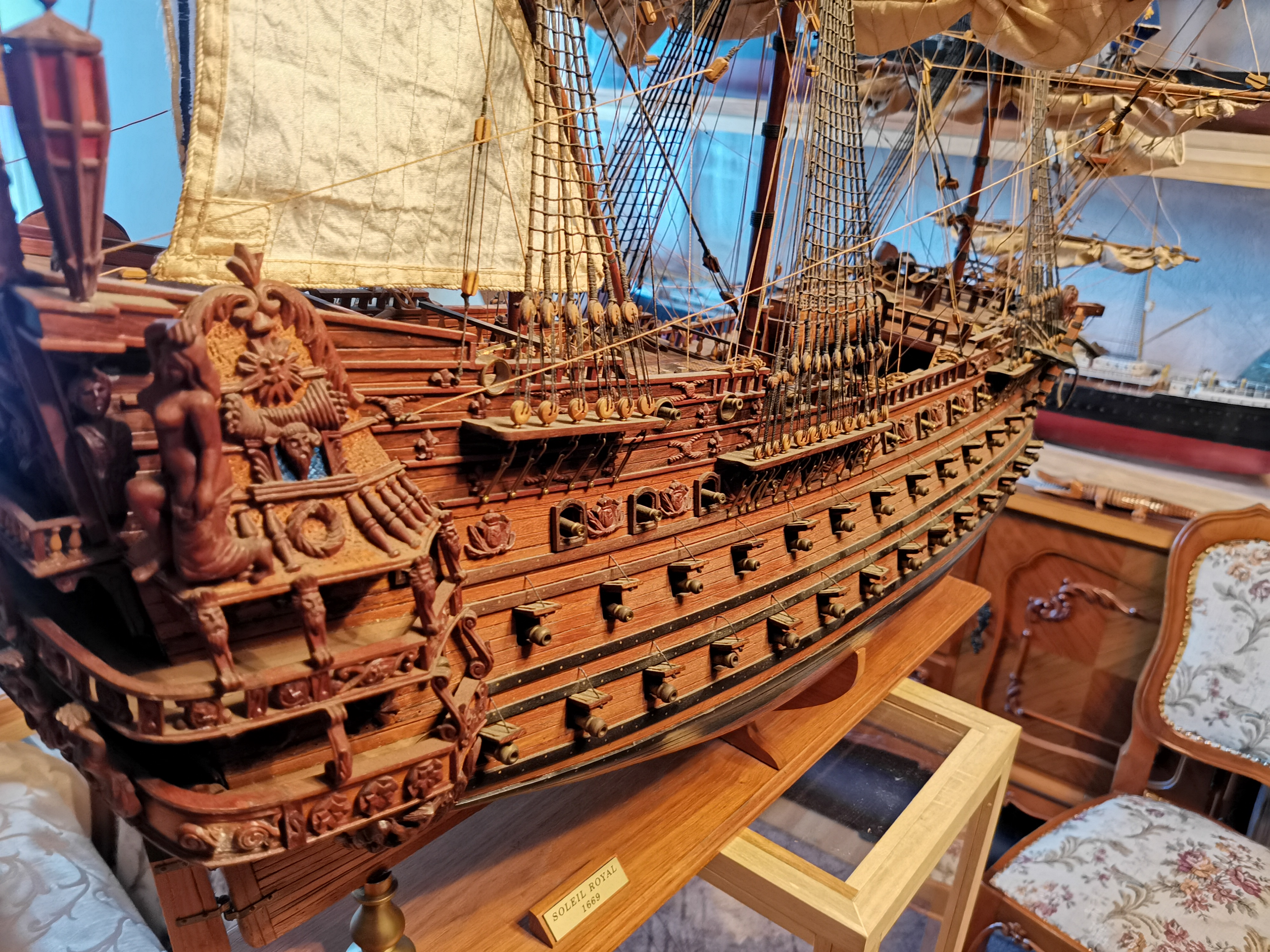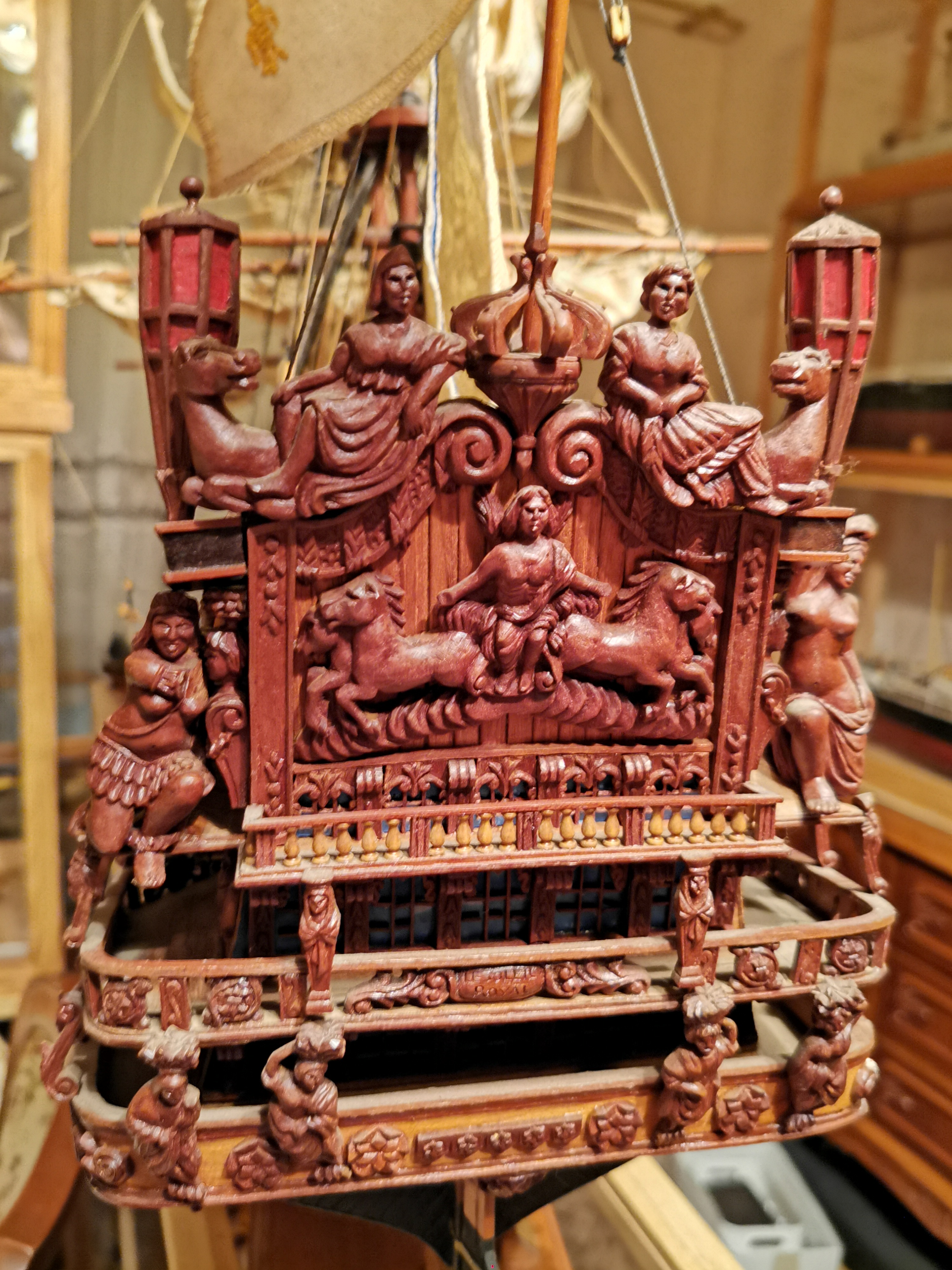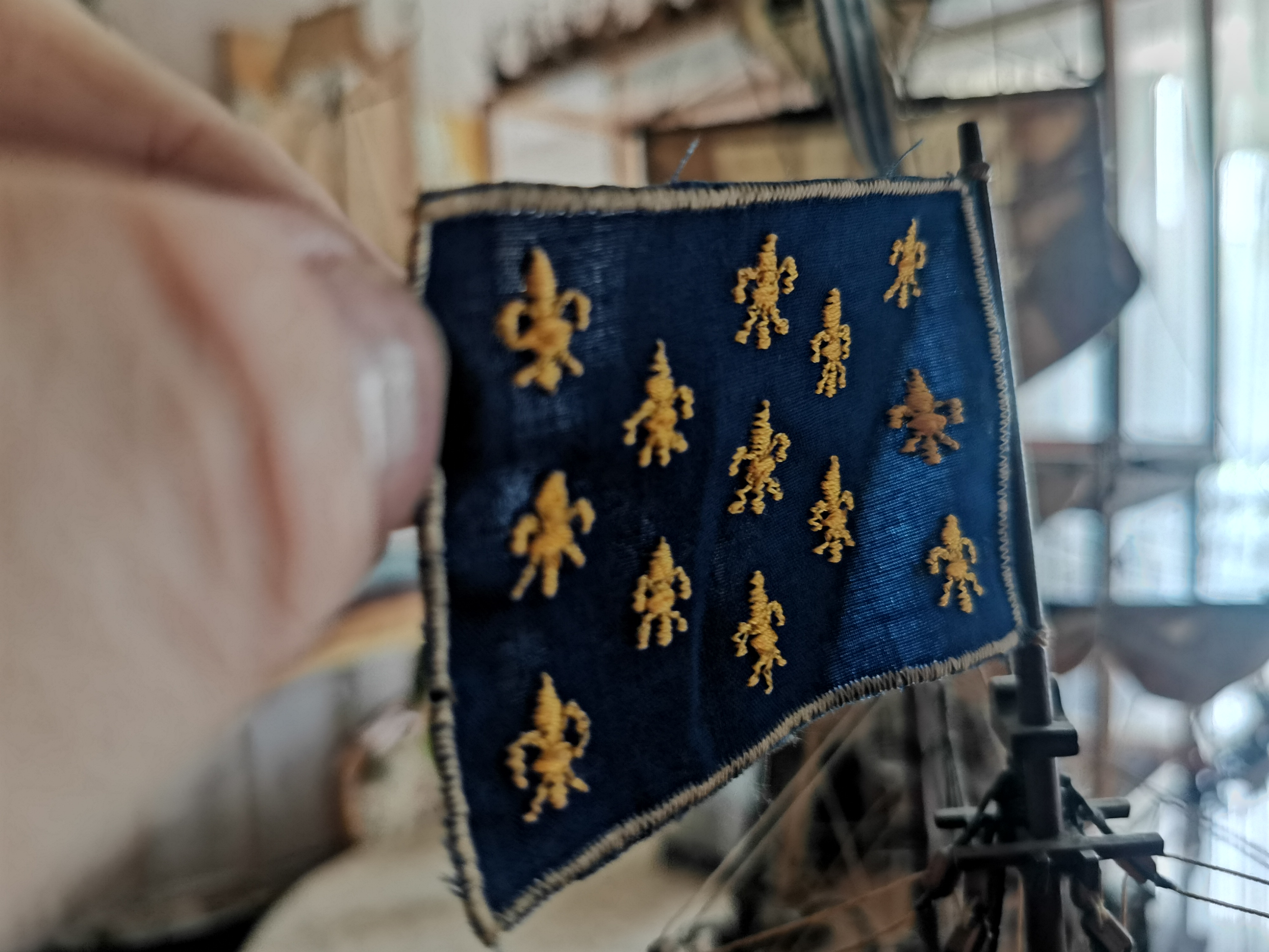 Malutki chwalipościk pryz okazji prac serwisowych. Całość drewienko. Nie ma tu nijakich odlewów czy innych wynalazków. Taki prawie jak w muzeum w Paryżu :-) Flagi mają monogramy haftowane. Reszta proporców to też hafty, To jako ciekawostka/Przy chwili pstryknę więcej fotek po czyszczeniu