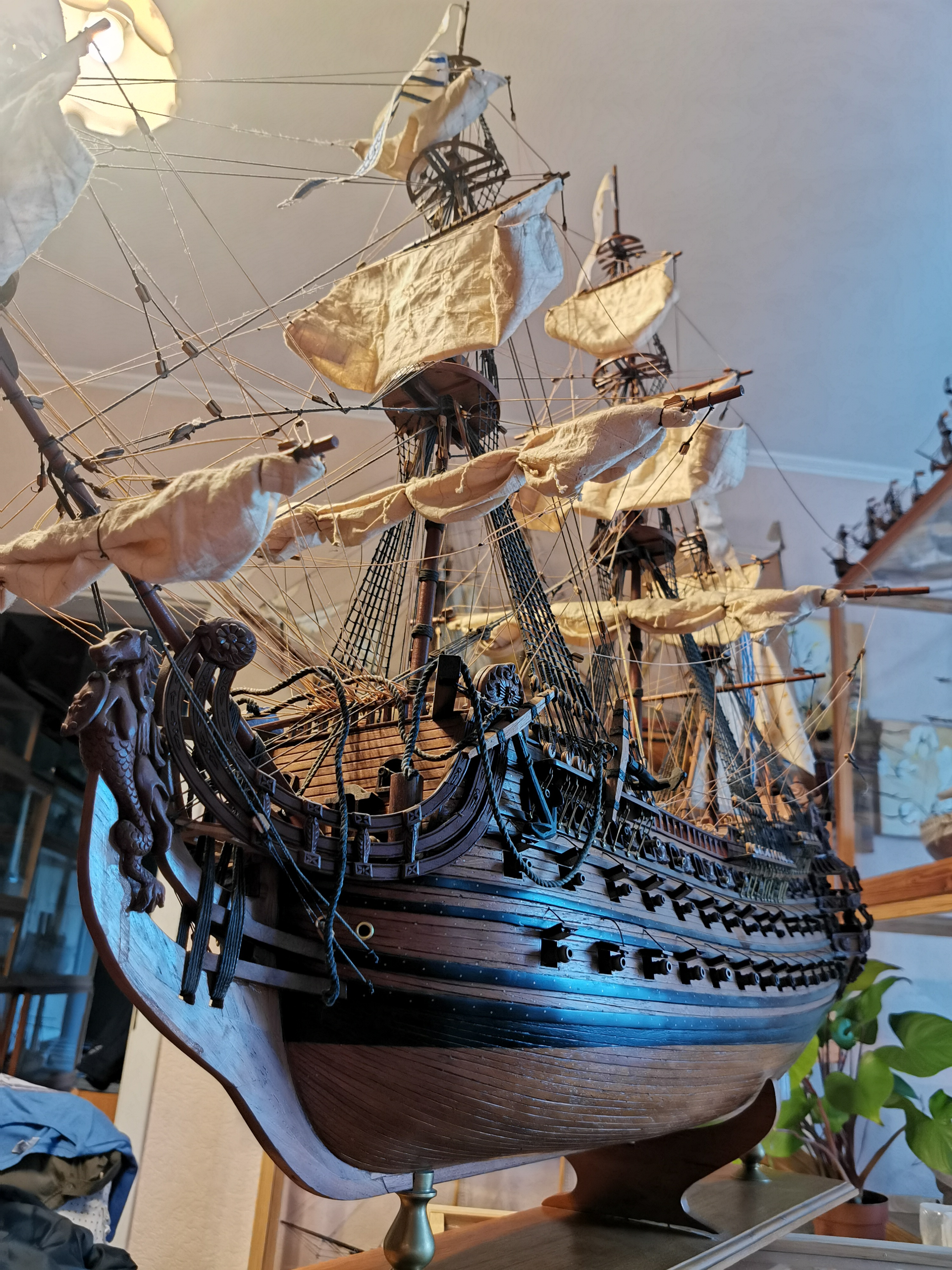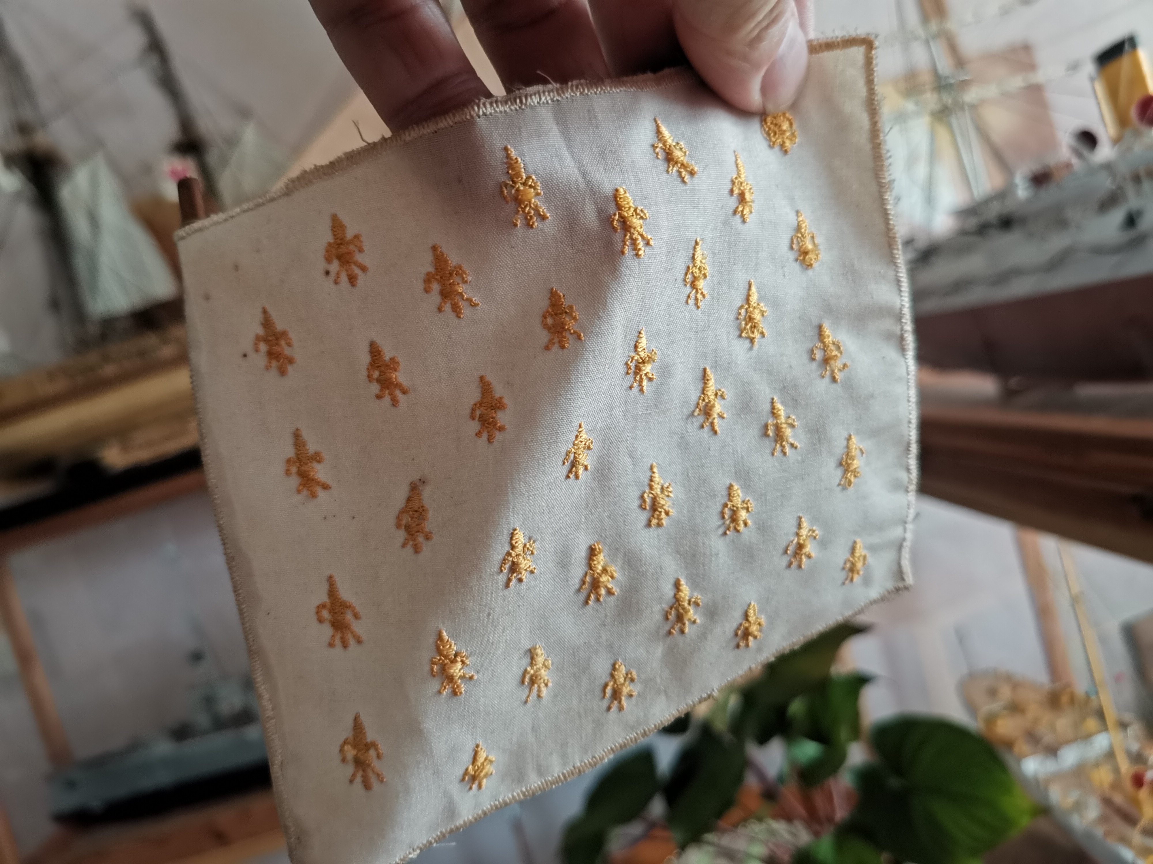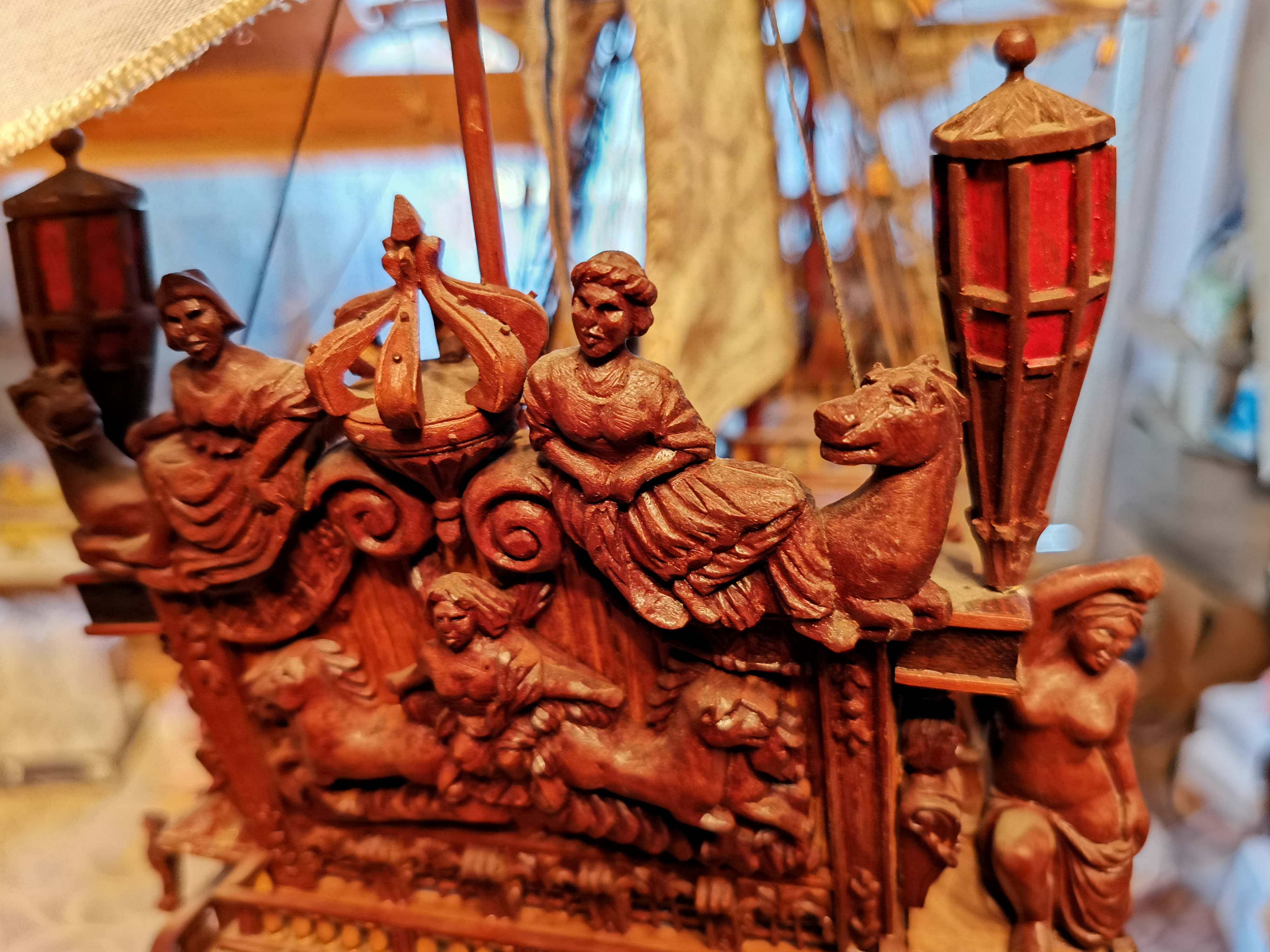 Malutki chwalipościk pryz okazji prac serwisowych. Całość drewienko. Nie ma tu nijakich odlewów czy innych wynalazków. Taki prawie jak w muzeum w Paryżu :-) Flagi mają monogramy haftowane. Reszta proporców to też hafty, To jako ciekawostka/Przy chwili pstryknę więcej fotek po czyszczeniu