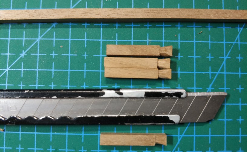 Elementy składowe kabestanu, gretingów i schodków zawarte były w zestawie. Pozostało wycięcie pachołków do barierek i nagelbanku. Listwa 3x3 mm została najpierw nacięta po obwodzie, a następnie odcięta po uprzednim usunięciu kołka dystansowego z wzornika. A dalej nożyk ... Armaty z zestawu są odpowiednie dla XV wieku, ale metalowe odlewy lawet nie prezentują się tak jak trzeba. Do wykonania lawet posłużyłem się rysunkiem z Historic Ship Models Wolframa zu Mondfelda: Warto wspomnieć, że lufy ówczesnych armat wykonane były z kutych żelaznych listew połączonych obręczami. Do tak wykonanej "rury" dołączano wymienną komorę prochową (armata odtylcowa). Wadą takiej konstrukcji była słaba szczelność, a co za tym idzie - niewielki zasięg. Zbyt duży ładunek prochu powodował wybrzuszenie prętów z których zbudowana była lufa, co dodatkowo zmniejszało szczelność. Dlatego do strzelania używano kul kamiennych - droższych w wykonaniu ale lżejszych od kul żeliwnych.