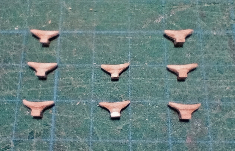Ściągacze wantowe to już praktycznie całkowicie ręczna robótka, raszpelkami i glaspapierem. Trudno tu uzyskać powtarzalność, ale jako tako wyszło, na zdjęciu dwa najmniej udane.