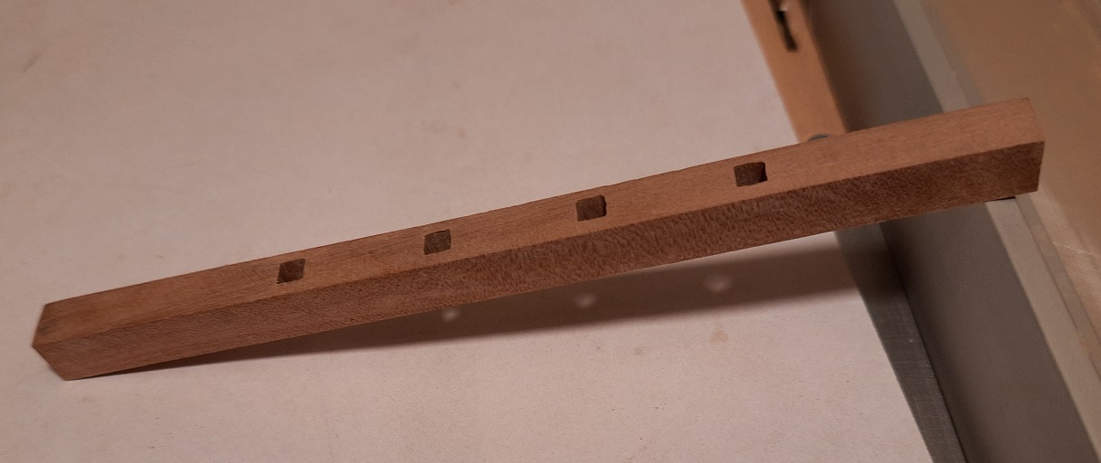 Zrobiłem ostatnie elementy do mocowania na pokładzie głównym. Będzie można teraz podciągnąć burty. Najwięcej czasu pochłonął kołowrót. Przewiercone otwory 1,5 mm trzeba było zrobić w kwadrat. Przy pomocy starego pilniczka który ma końcówkę 1,1 mm ale ruch posuwisty to jedynie 2-3 mm. Jak wyszło pokazuję na zdjęciach. Pozdrawiam. Janek.