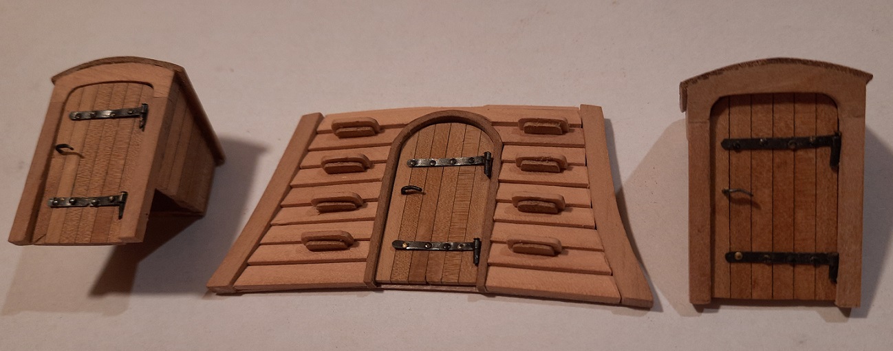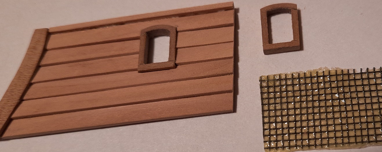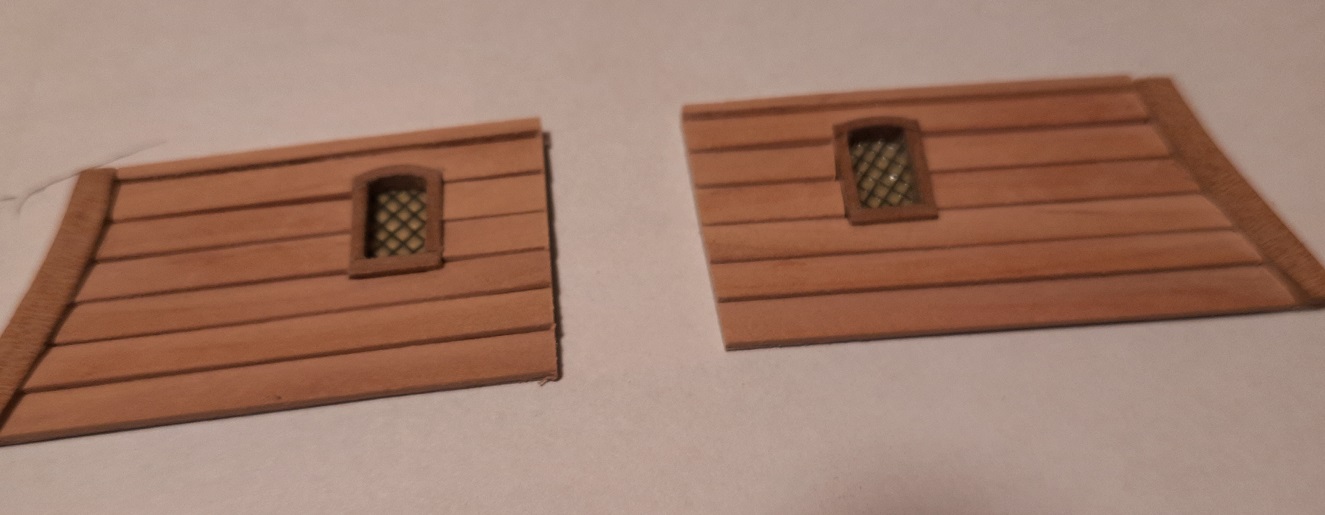 Przyszedł czas na drobnicę. Puki nie ma burt i jest dostęp do pokładu staram się przygotować co można już teraz by uniknąć później "gimnastyki". W Kruku zamiast schodów są "ścianki wspinaczkowe" - powtarzalne ale malutkie elementy. Malutkie są również okna a ich szklenie wykonałem z odpadów po moskitierze zalanych chińską farbą do malowania na szkle. Zawiasy drzwi są z blaszki grubości 0,3 mm i szerokości 2 mm. Udało mi się uniknąć lutowania zawiasów poprzez wprowadzenie rurki miedzianej o średnicy 1 mm przyciętej i doszlifowanej na długości pod kontem 45 stopni. Przez rurkę przechodzi sworzeń z gwoździka 0,5 mm. Drzwi się otwierają ale dla mnie dobrze to nie wygląda więc je pozamykałem. Efekty tych prac przedstawiam na zdjęciach. Na razie to tyle. Pozdrawiam. Janek