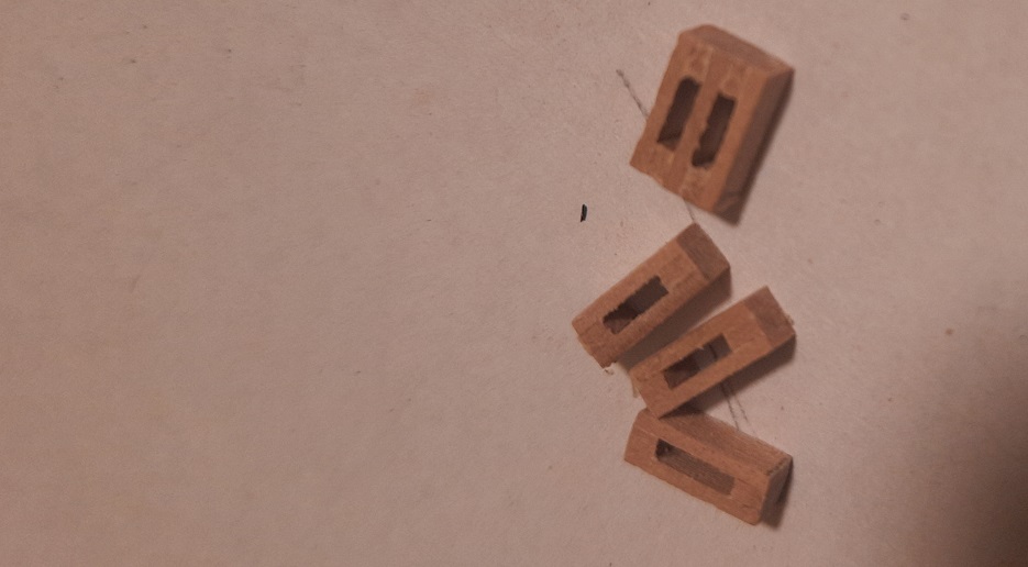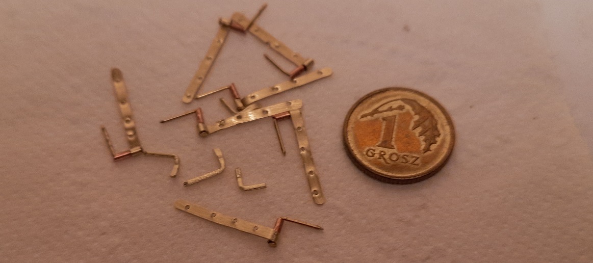 Zrobiłem ostatnie elementy do mocowania na pokładzie głównym. Będzie można teraz podciągnąć burty. Najwięcej czasu pochłonął kołowrót. Przewiercone otwory 1,5 mm trzeba było zrobić w kwadrat. Przy pomocy starego pilniczka który ma końcówkę 1,1 mm ale ruch posuwisty to jedynie 2-3 mm. Jak wyszło pokazuję na zdjęciach. Pozdrawiam. Janek.