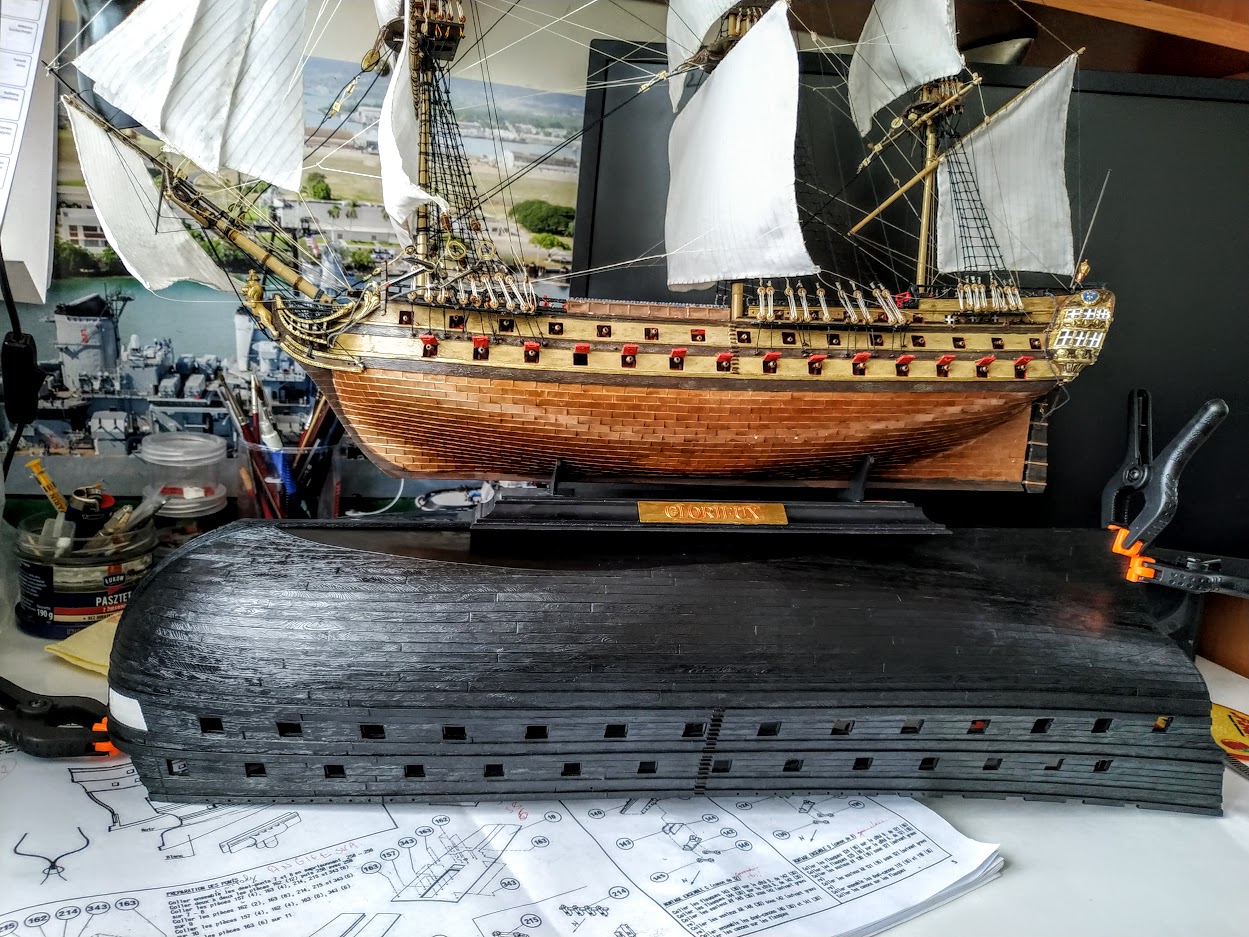 No więc zaczynamy coś kleić... Bez podstawki montażowej ani rusz..Niby toto nie jest jakimś olbrzymem ale Le Glorieux na jego tle wydaje się zupełnie mikro...
